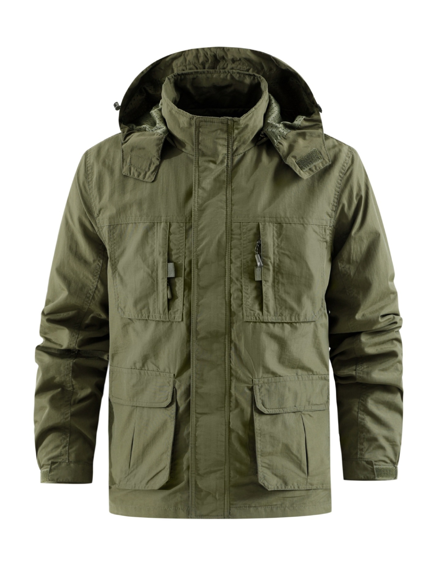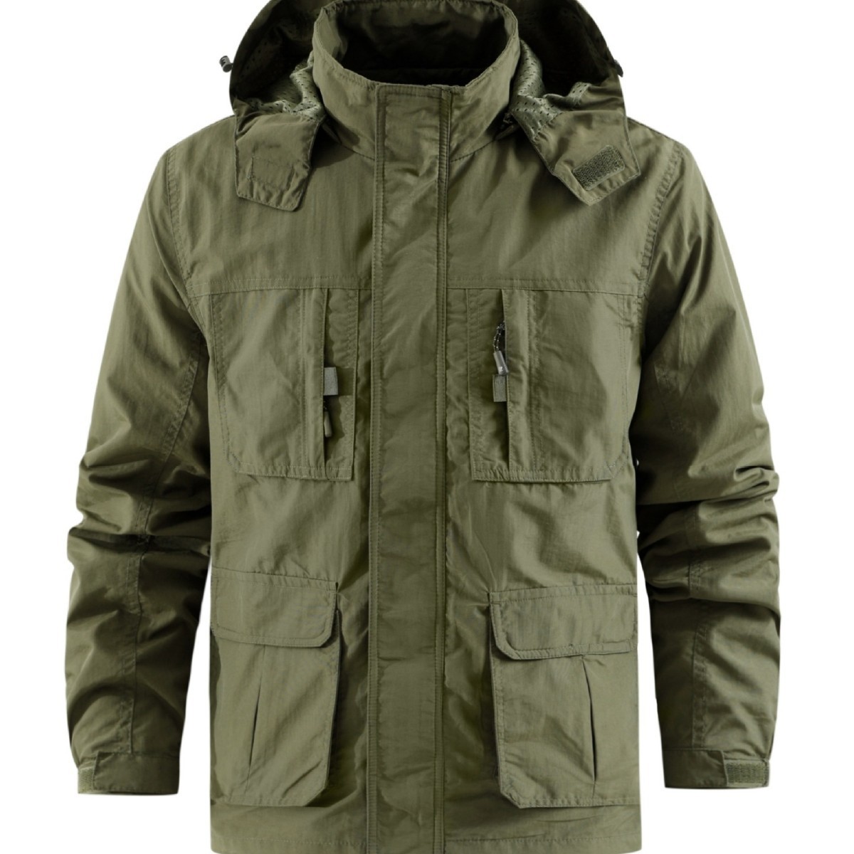 국경 간 대외 무역 봄, 가을 남성 코트 캐주얼 스탠드 칼라 루즈 자켓 멀티 포켓 중년 탈착식 후드 아웃도어 자켓