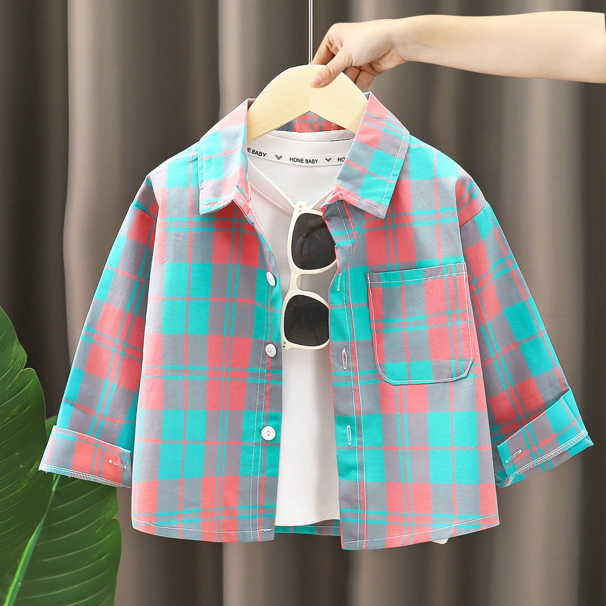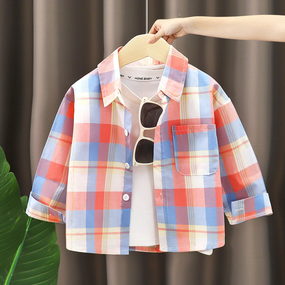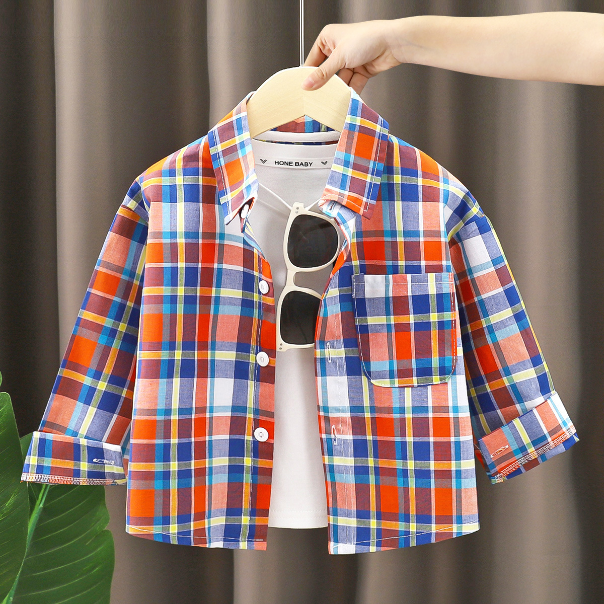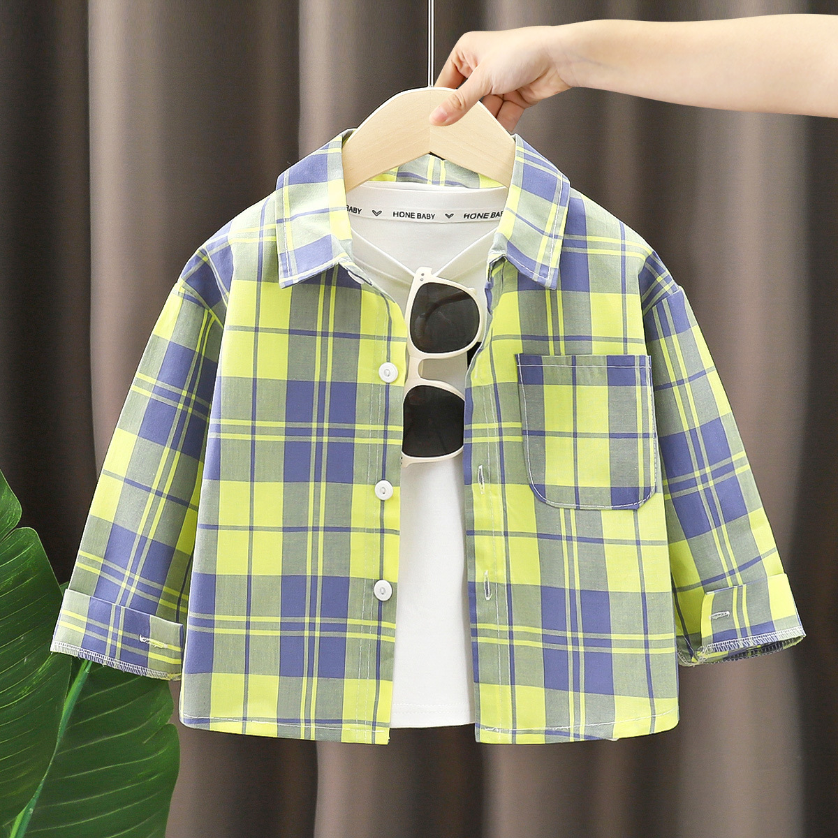 아동용 셔츠 순면 긴팔 남성용 2025 새로운 스타일 베이비 체크 무늬 셔츠 봄, 가을 어린이 옷깃 탑