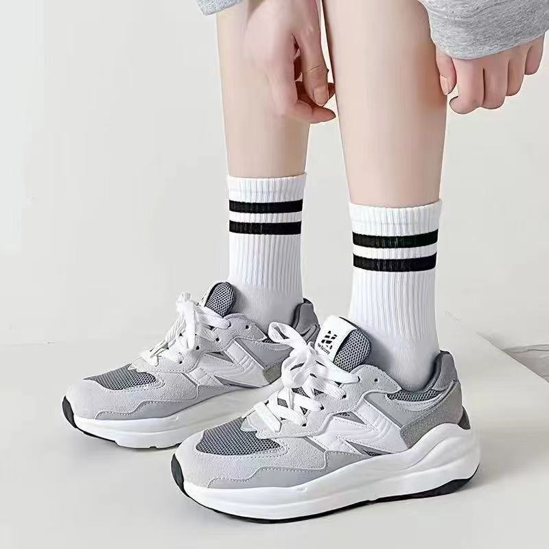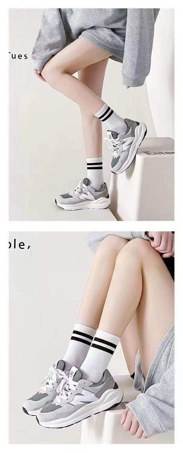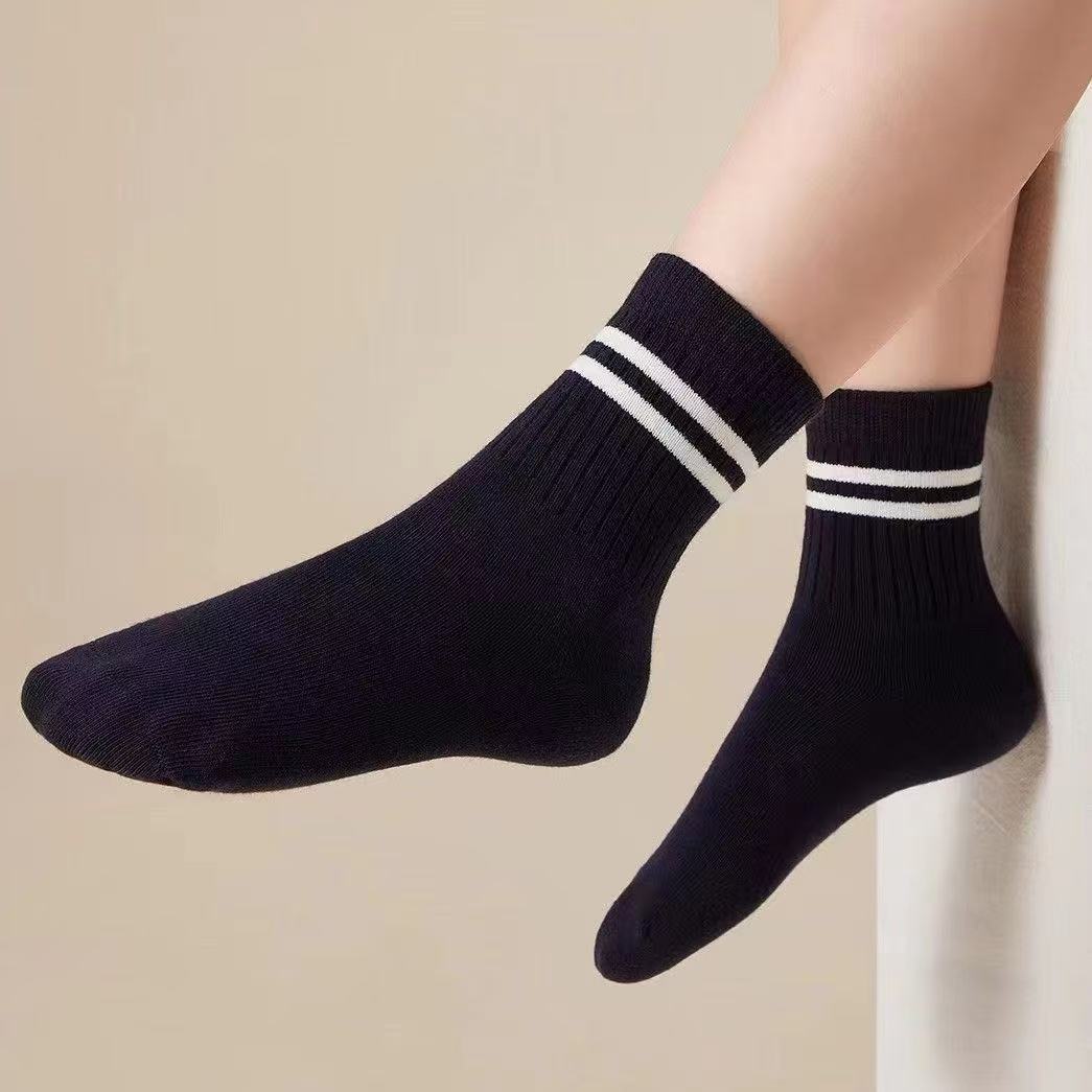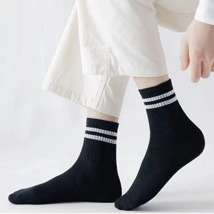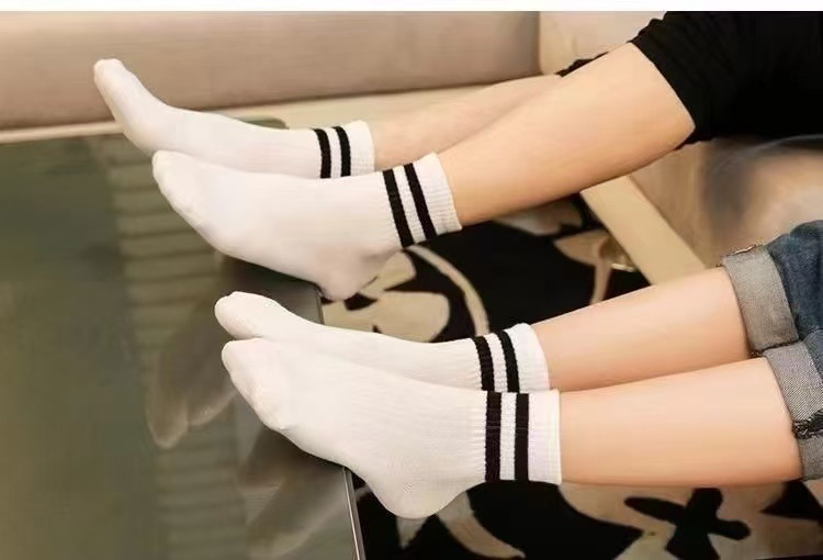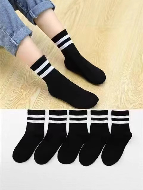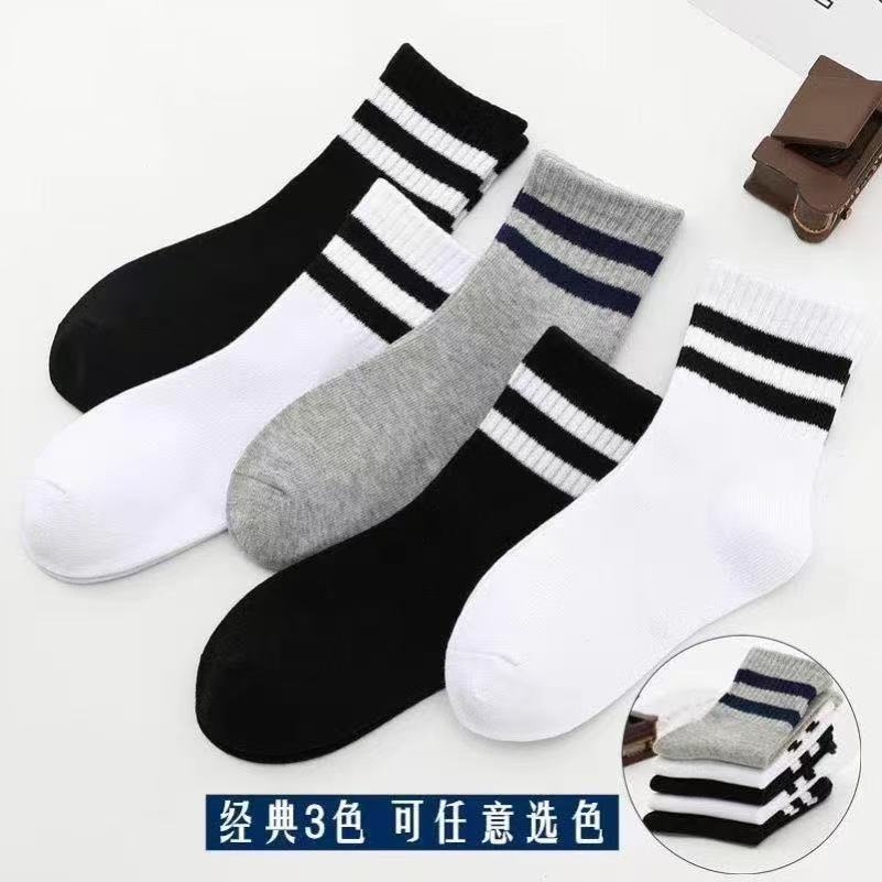 어린이 양말 봄과 여름 2 바 흑백 회색 중간 튜브 양말 소년과 소녀를위한 중형 및 대형 어린이 다목적 탈취제 스포츠 양말 도매