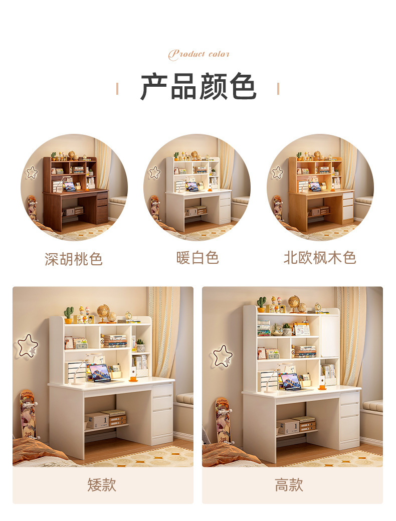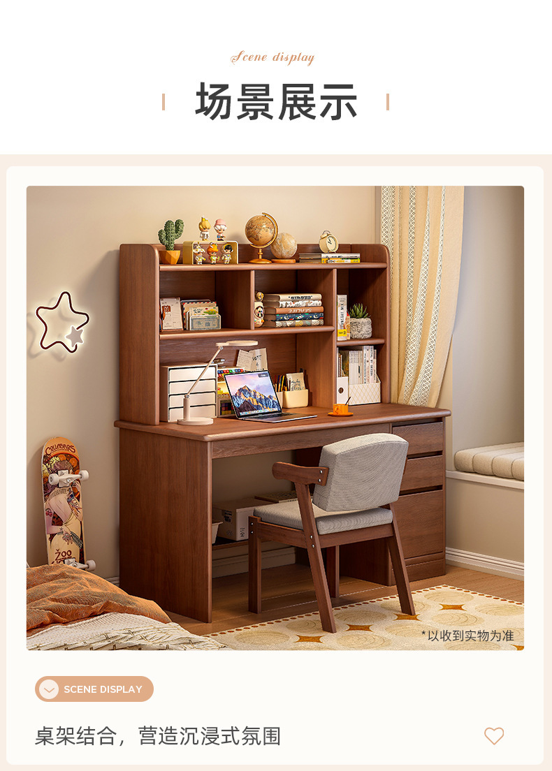 단단한 나무 책상 크림 스타일 독서 테이블 침실 발코니 테이블 어린이 학습 테이블 책장 통합 학생 컴퓨터 테이블