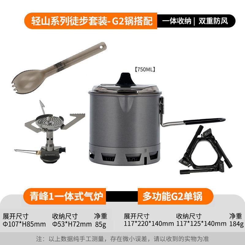 • Qingshan 두 번째 시리즈 하이킹 세트 G2 냄비 + 접이식 포크 + 가스 2병
