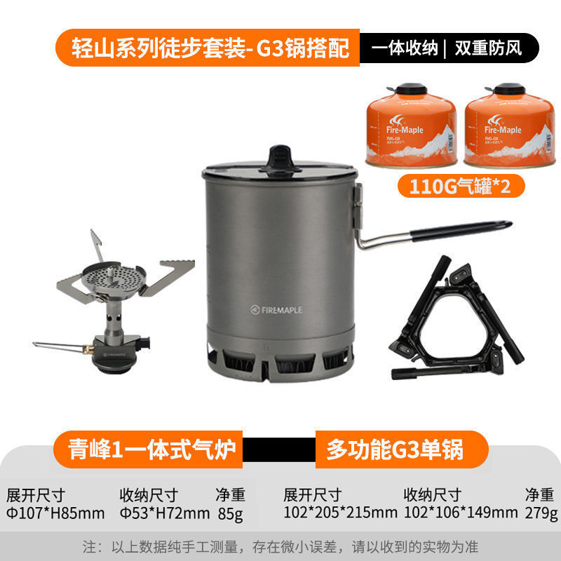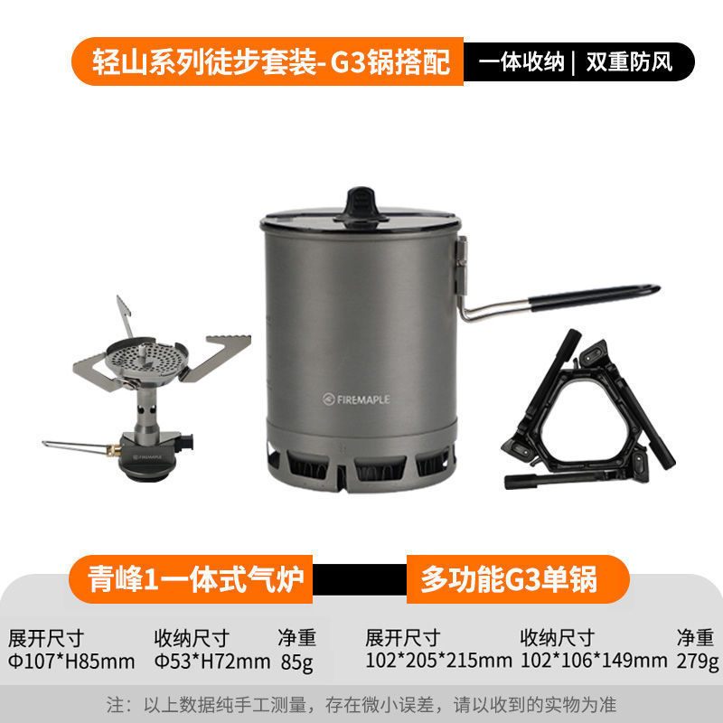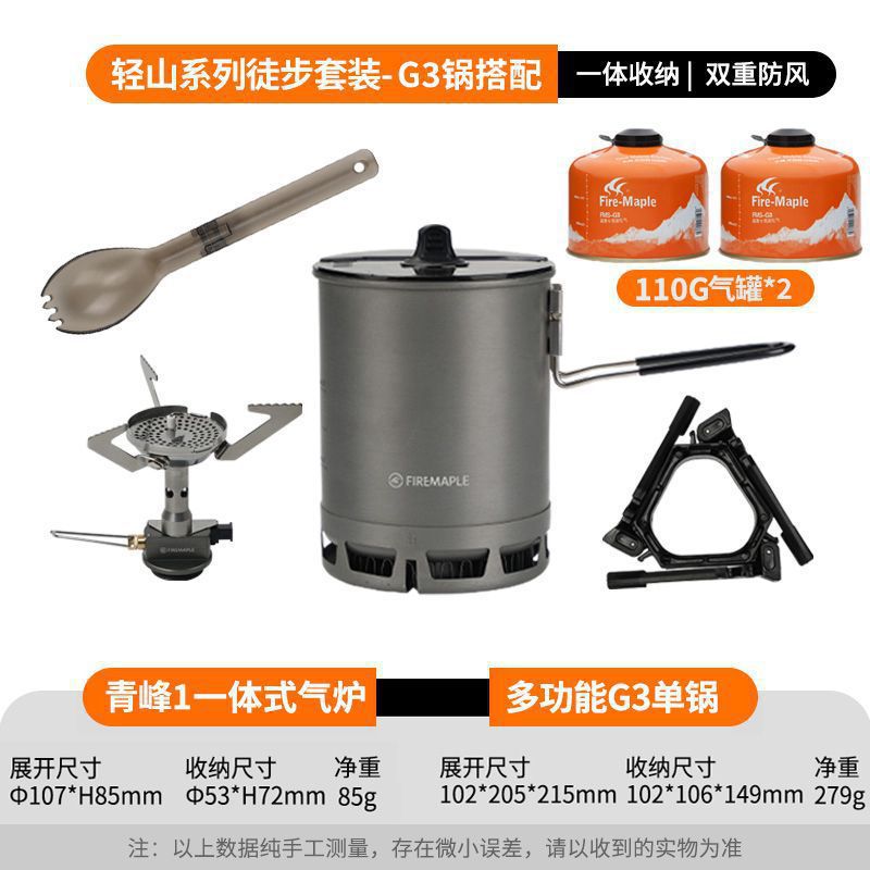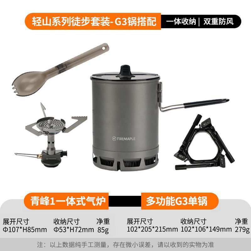 • Qingshan 하이킹 세트 시리즈 G3 냄비 + 접이식 포크 + 가스 2병