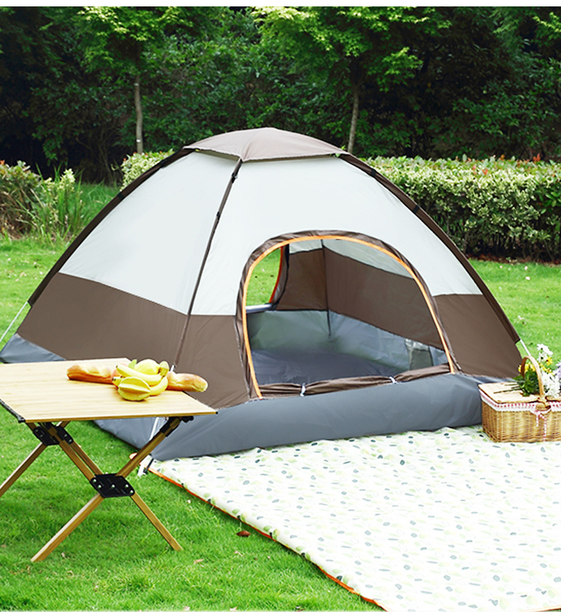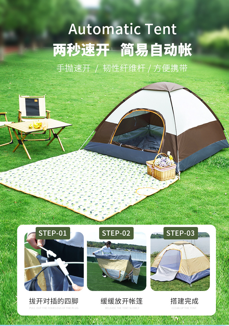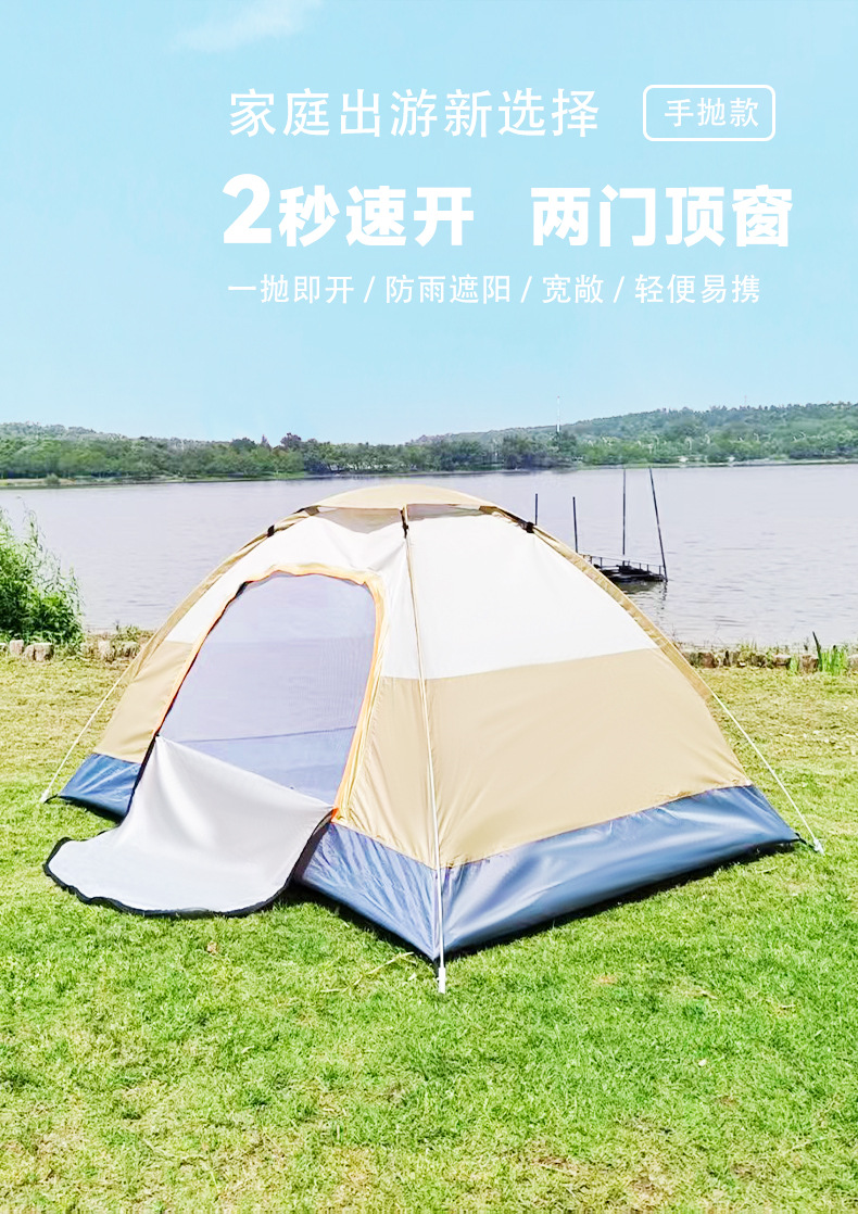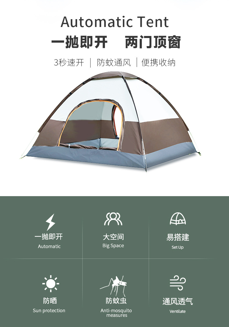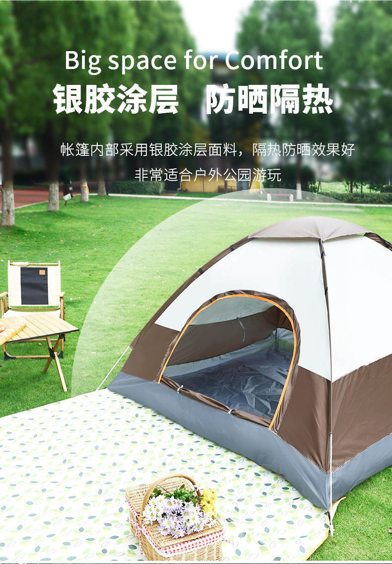 텐트 야외 완전 자동 방수 및 차양 휴대용 접이식 2 도어 창문 없음 두꺼운 실버 접착제 다인용 야간 캠핑