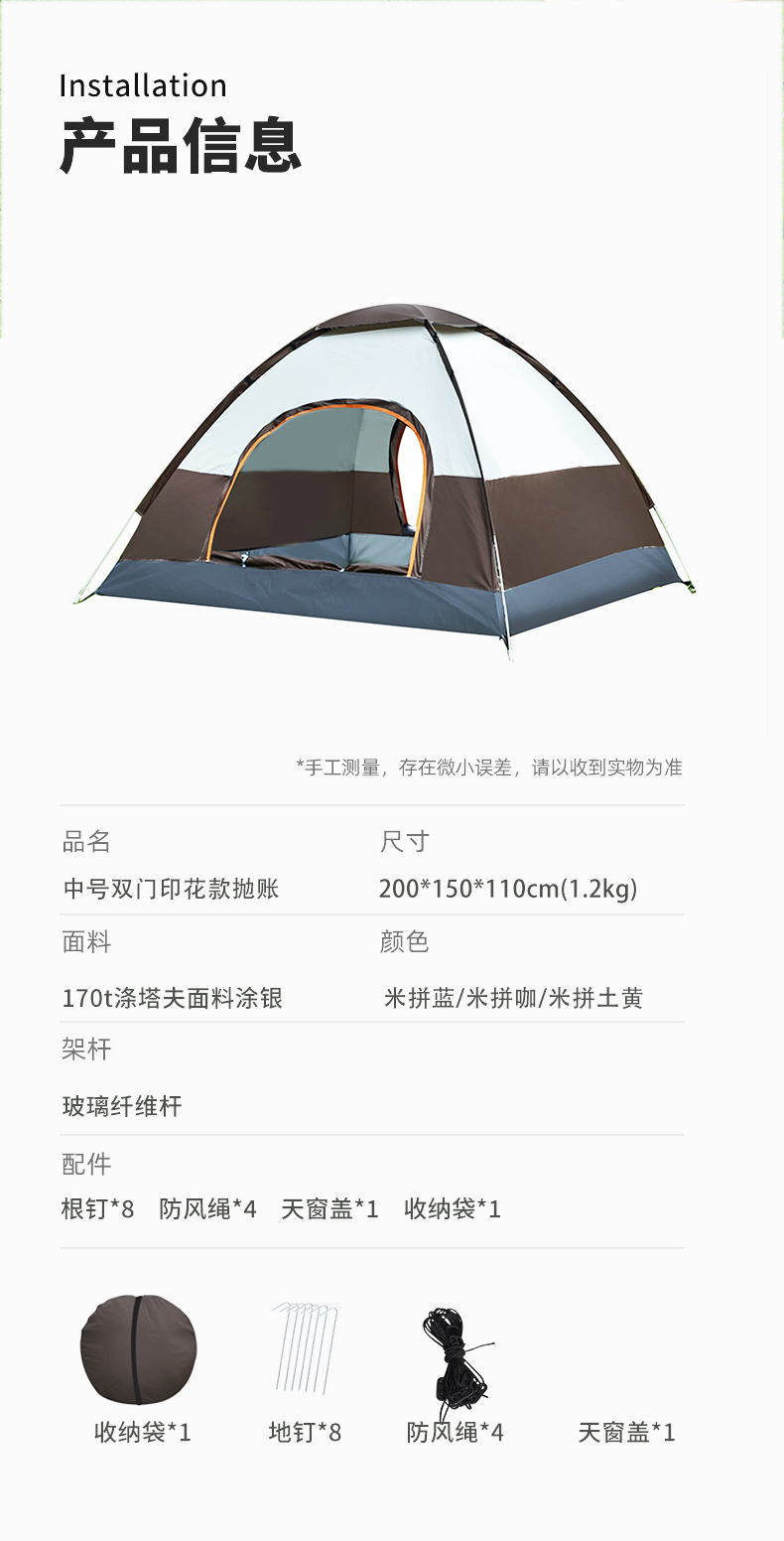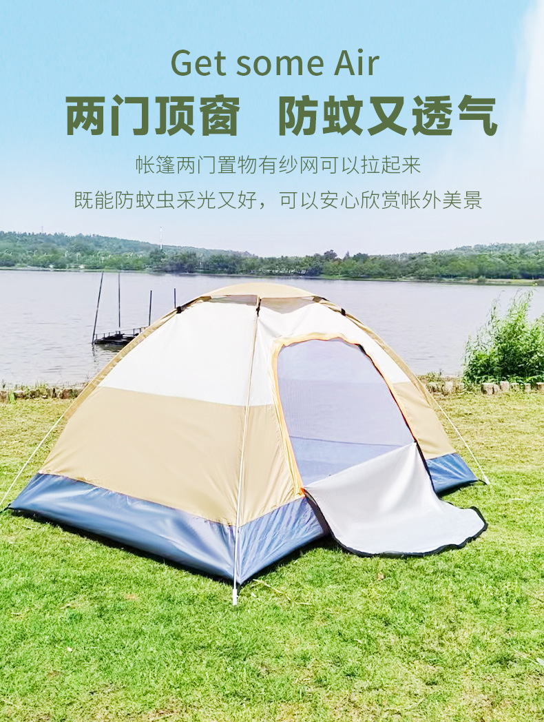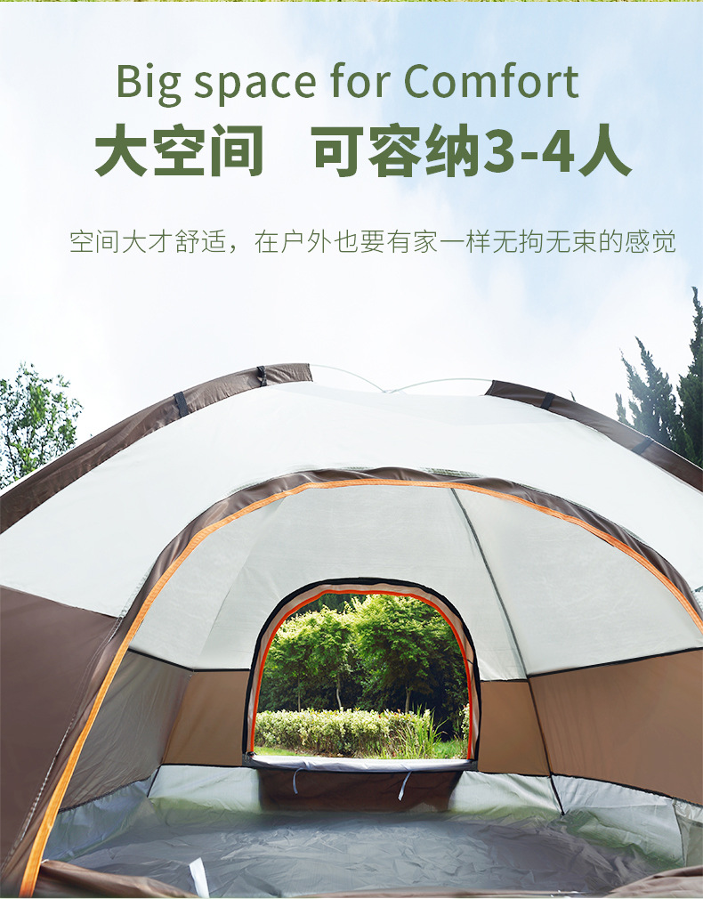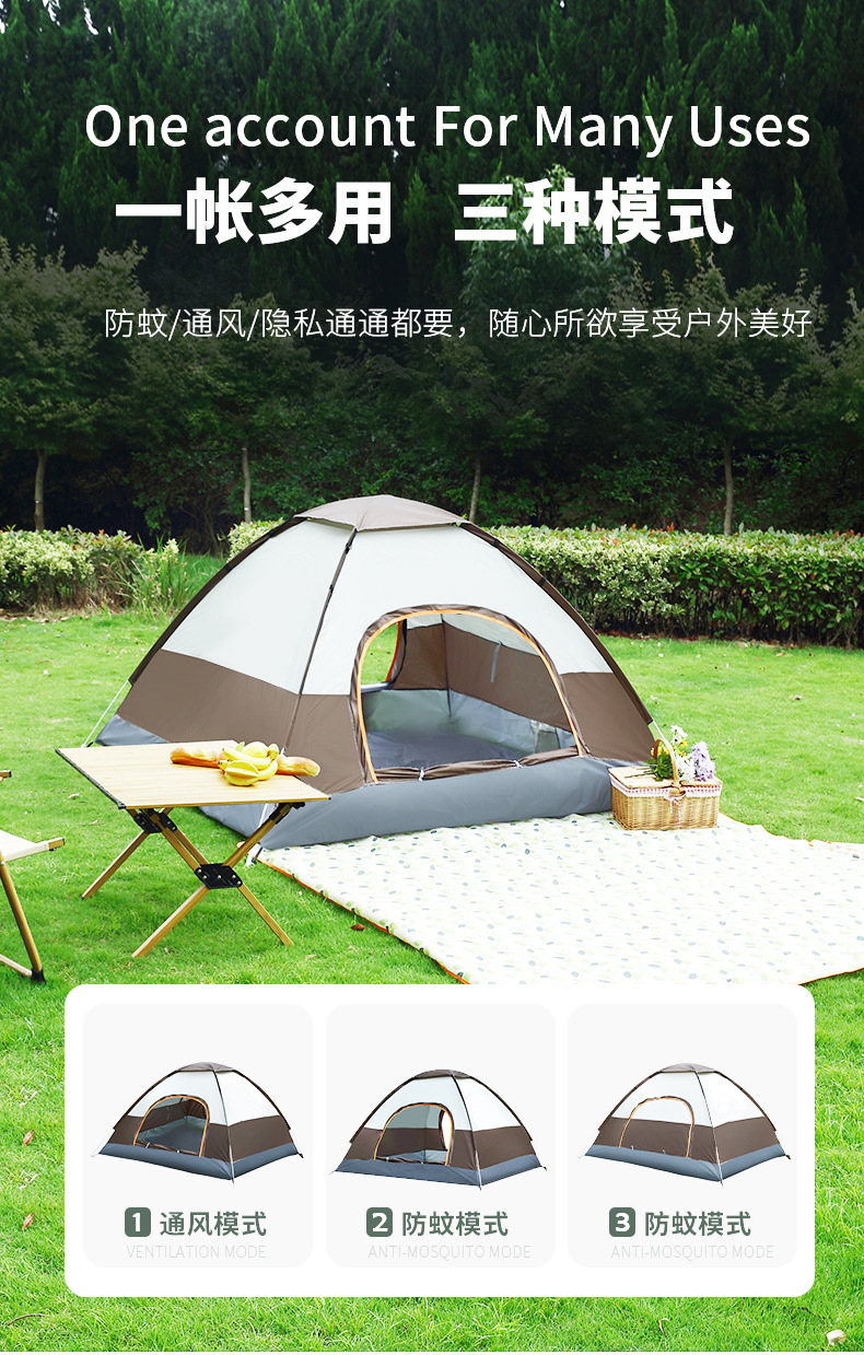 텐트 야외 완전 자동 방수 및 차양 휴대용 접이식 2 도어 창문 없음 두꺼운 실버 접착제 다인용 야간 캠핑