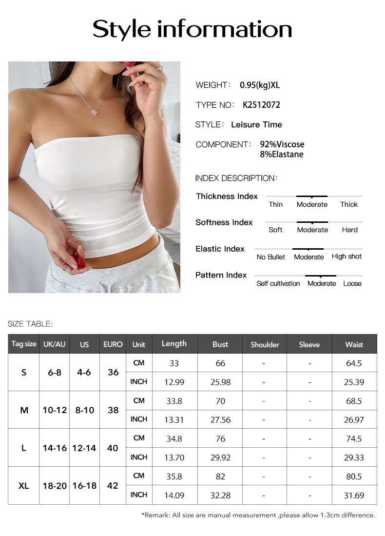 Diyun 2025 봄 여름 신제품 크로스보더 Amazon 유럽과 미국 Y2K 섹시한 솔리드 컬러 백리스 니트 튜브 탑 여성용