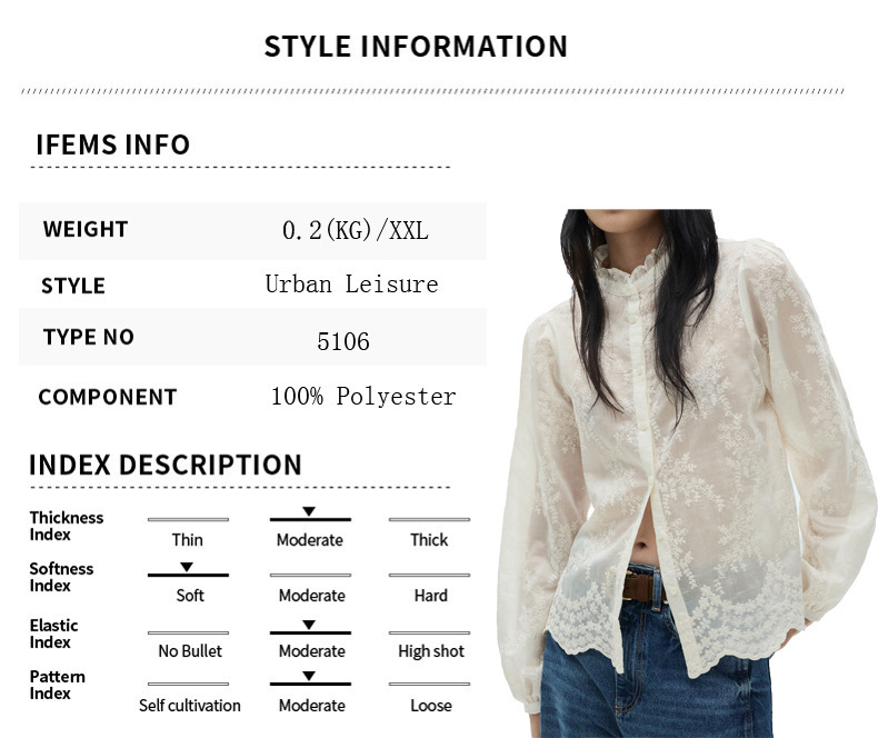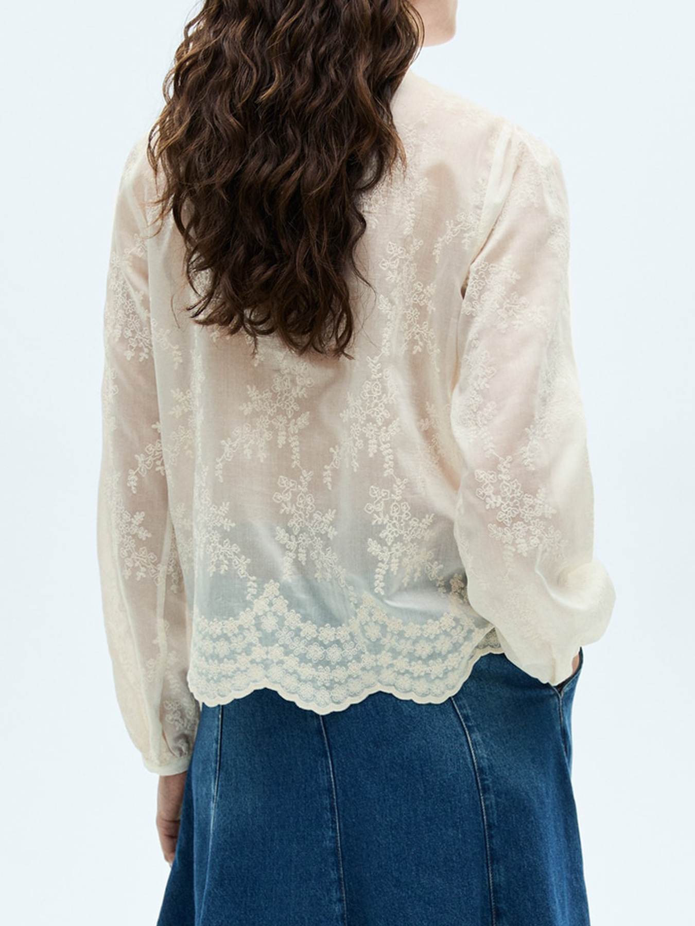 유럽 및 미국 여성 의류 아마존 25 봄 여성용 셔츠 자수 텐셀 쉬폰 긴팔 반투명 탑 패셔너블하고 다재다능함