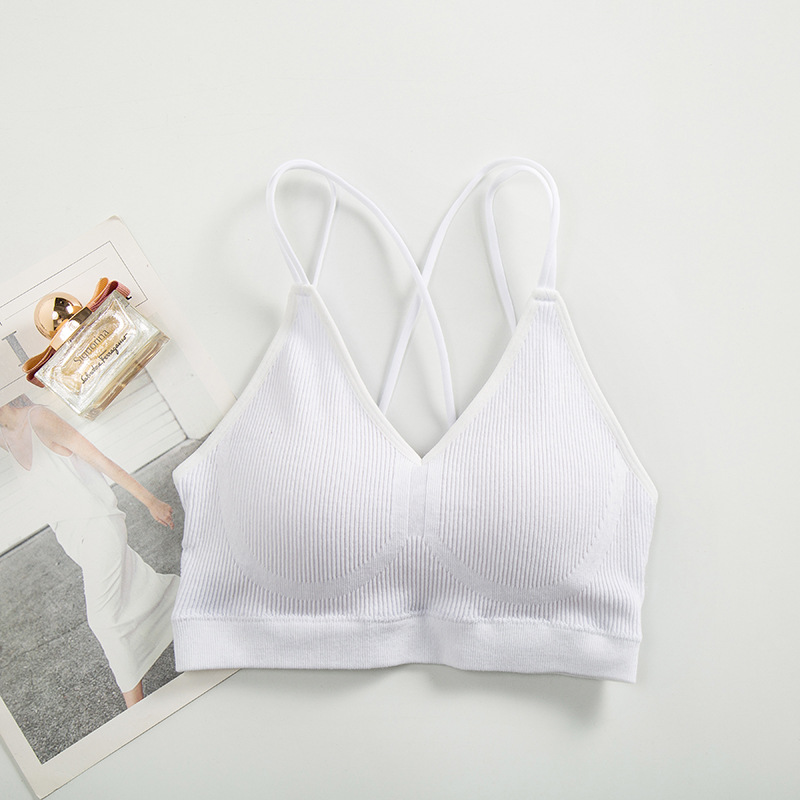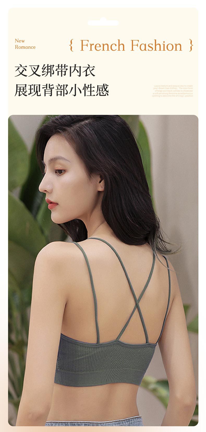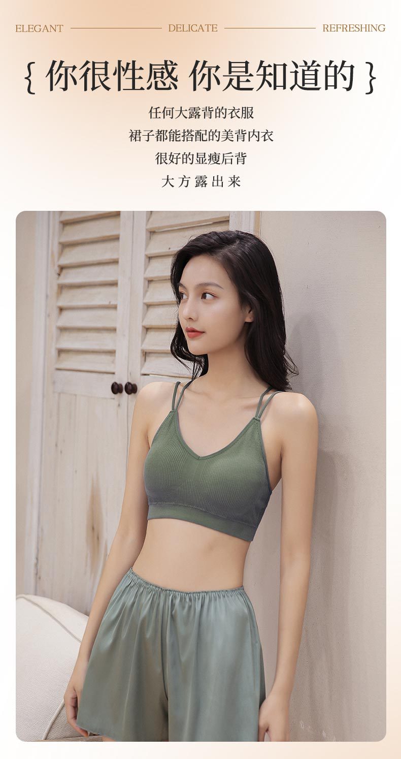 여름 신상 심플 아름다운 등 디자인 버클리스 일체형 크로스 스트랩 얇은 컵 V자형 브라 코튼 브라스토어 가기