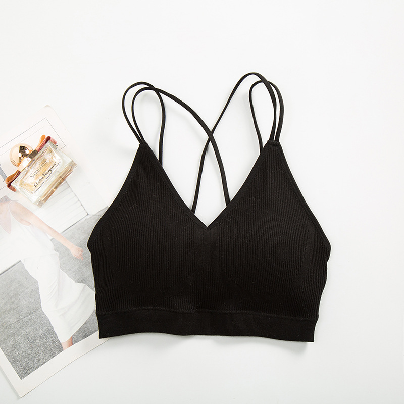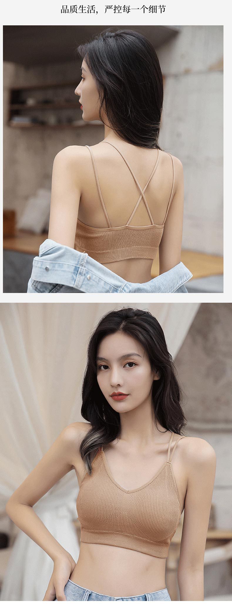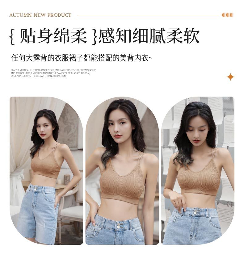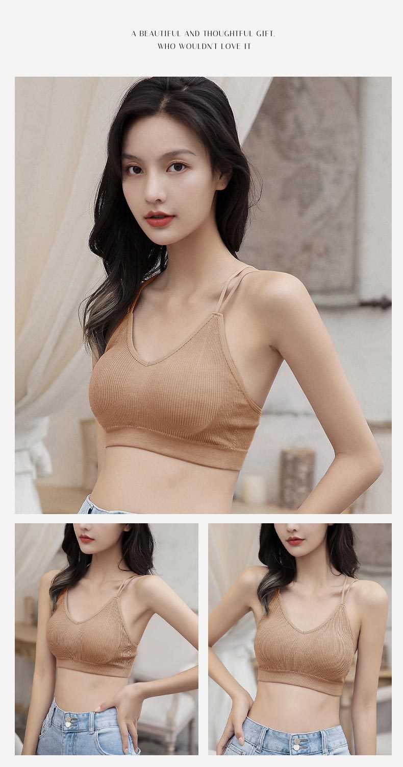 여름 신상 심플 아름다운 등 디자인 버클리스 일체형 크로스 스트랩 얇은 컵 V자형 브라 코튼 브라스토어 가기
