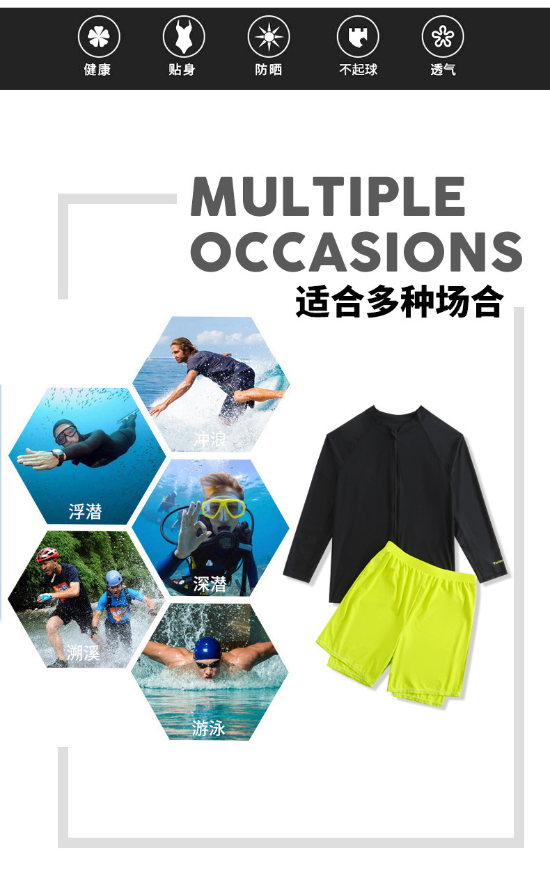 크로스보더 특대 남성 수영복 및 수영복 세트 스플릿 긴팔 자외선 차단제 플러스 사이즈 뚱뚱한 남성 잠수복 서핑 슈트