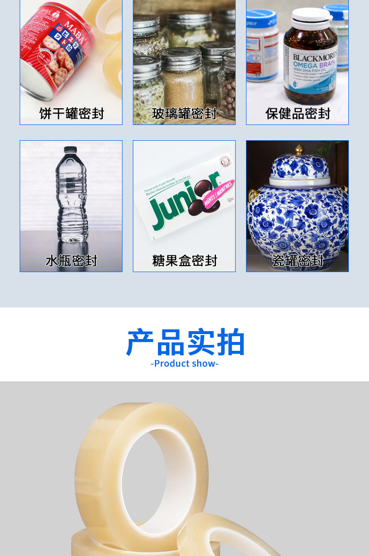 PVC封罐胶带 PVC食品胶带 PVC食品封罐胶带 PVC密封胶带 PVC食品密封胶带 铁罐密封胶带 玻璃密封胶带 月饼盒密封胶带 塑料瓶密封胶带 铁罐封罐胶带 玻璃封罐胶带 月饼盒封罐胶带 塑料瓶封罐胶带