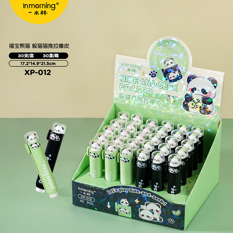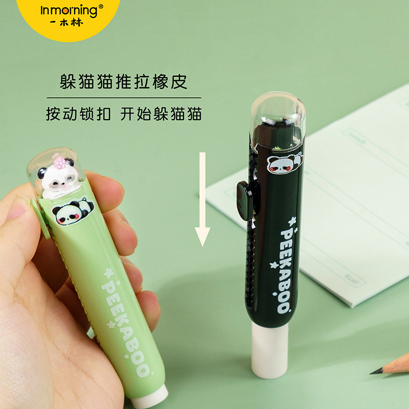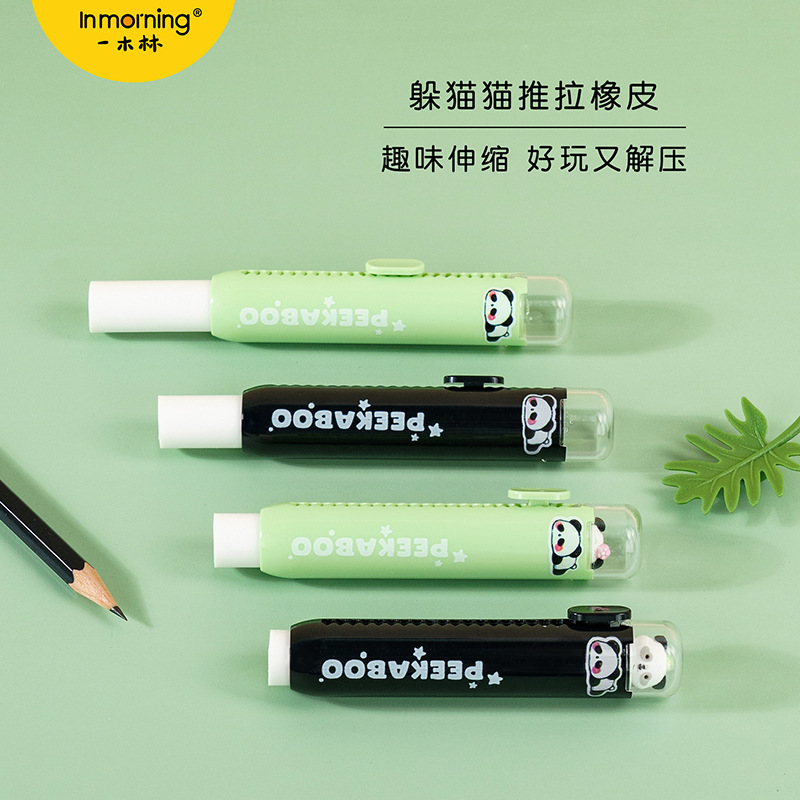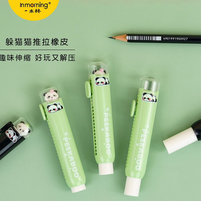 Yimulin Peek-a-boo 푸시풀 지우개 초등학생을 위한 창의적인 팬더 모양의 지우개로 흔적을 남기지 않고 지우기 위해 누릅니다.스토어 가기