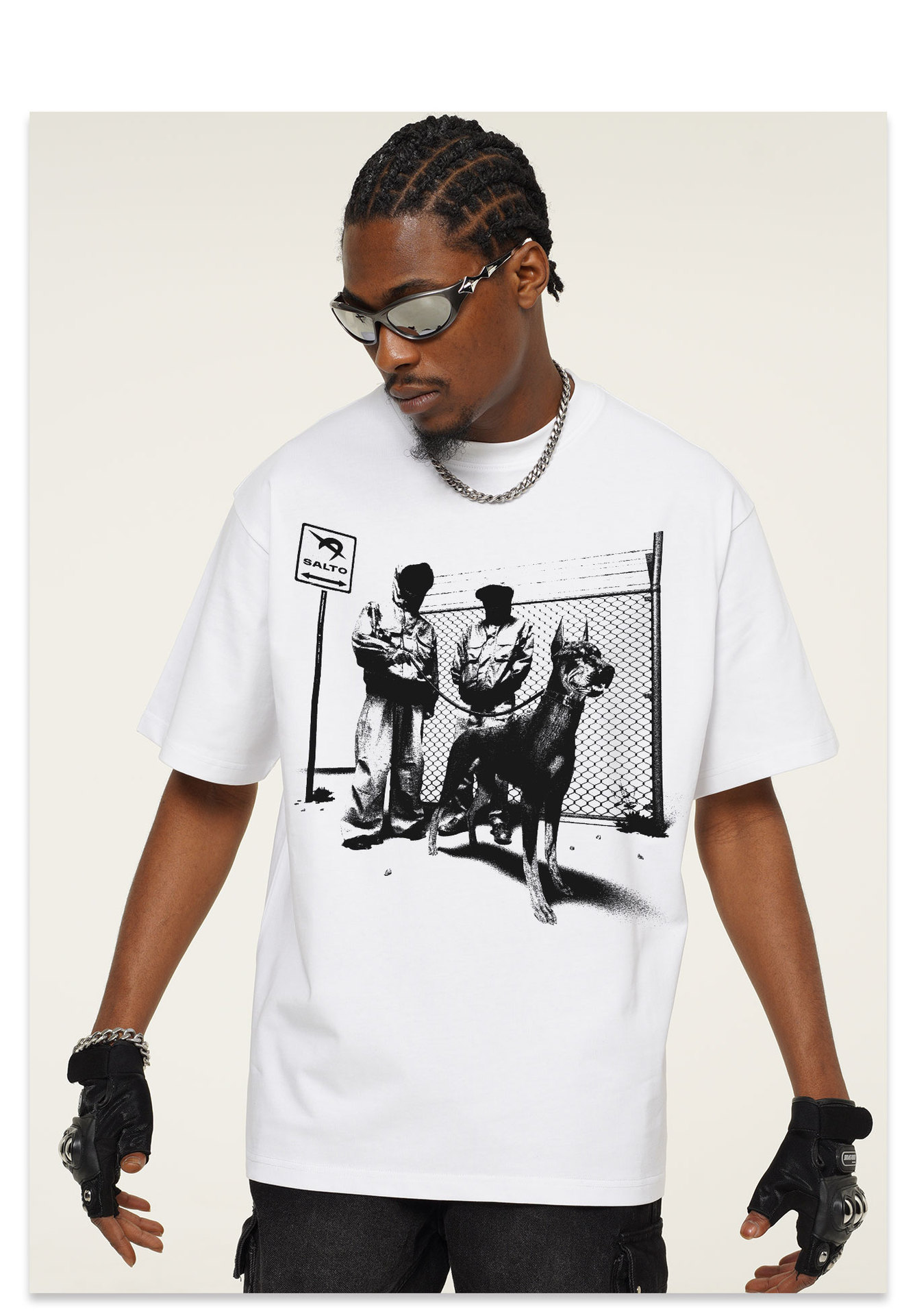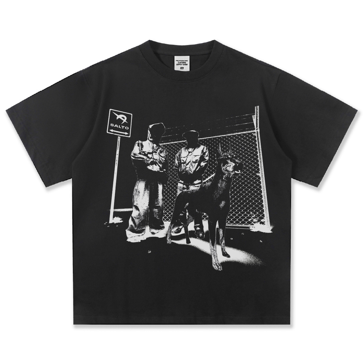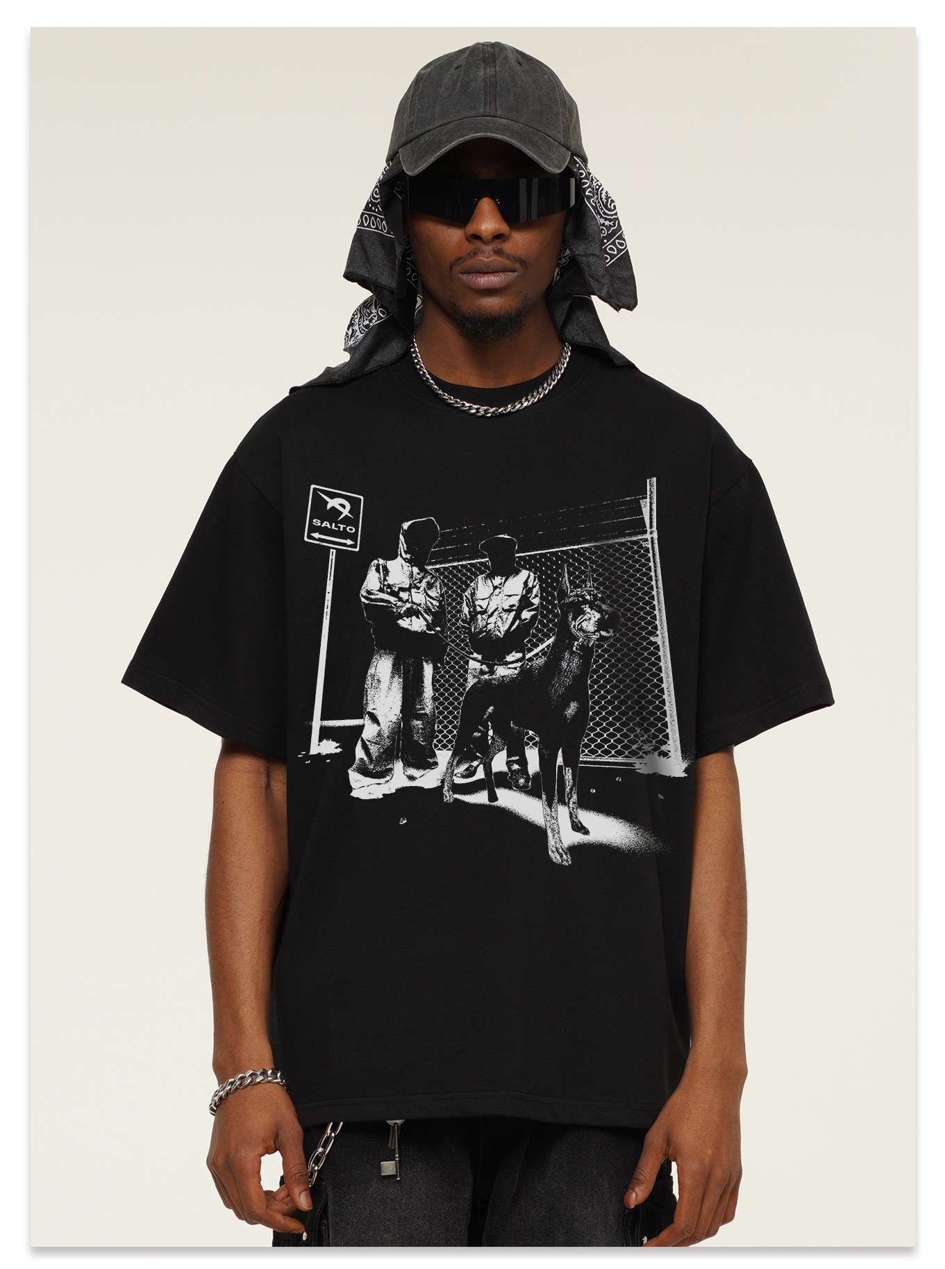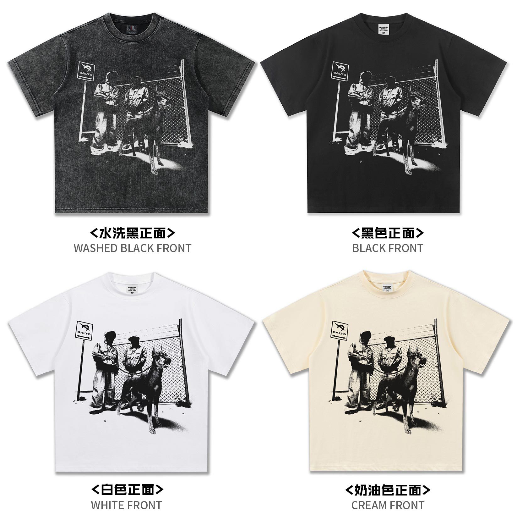 2025 크로스보더 아메리칸 도베르만 레트로 하이 스트리트 300g 순면 반팔 티셔츠 통기성 프린트 반팔 남성용 베이스스토어 가기