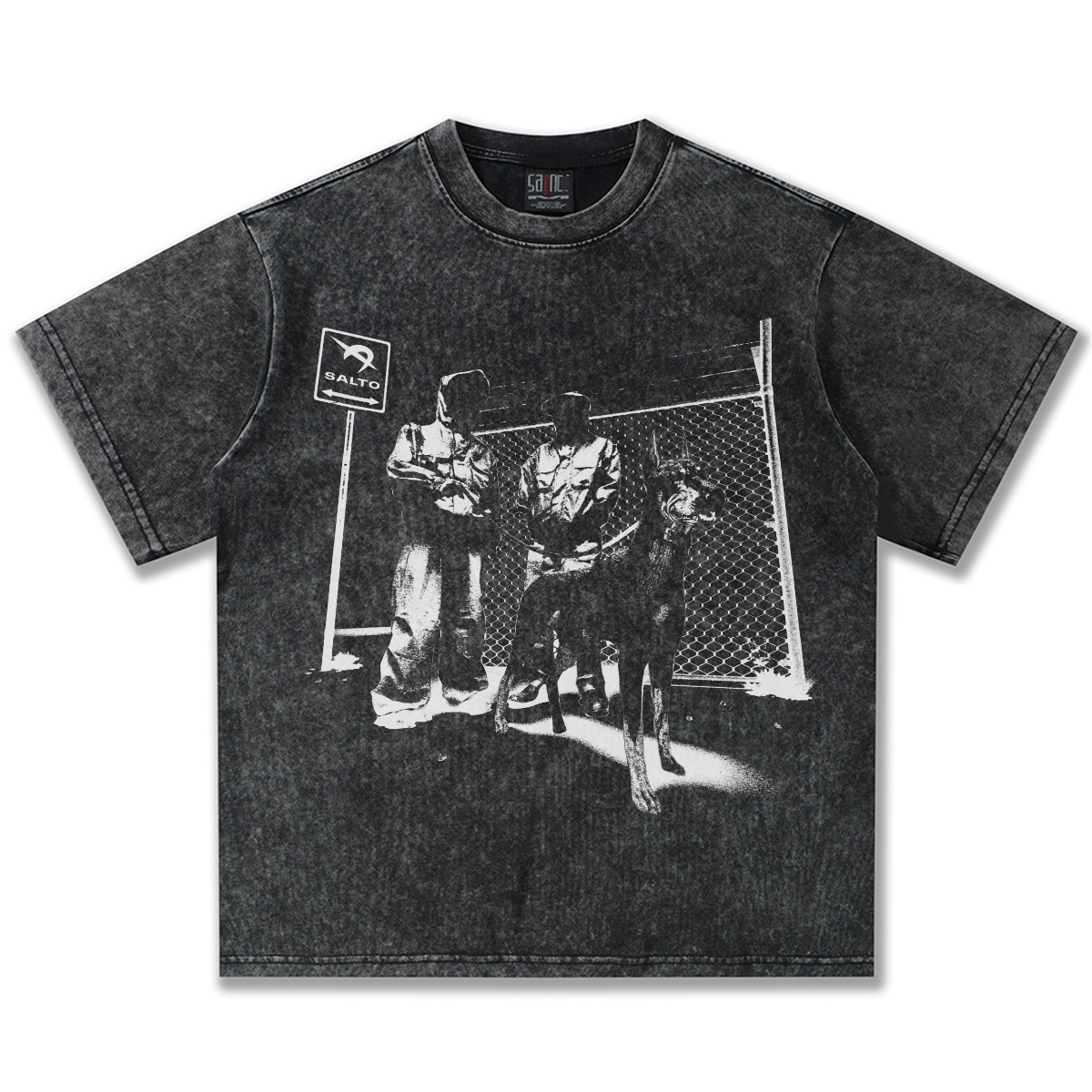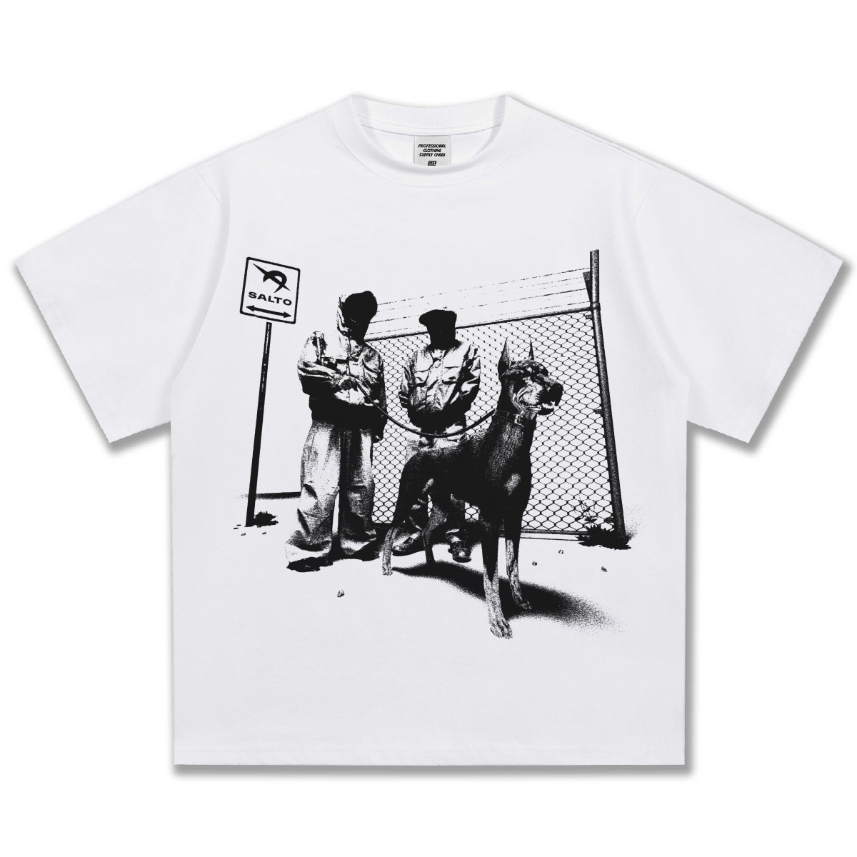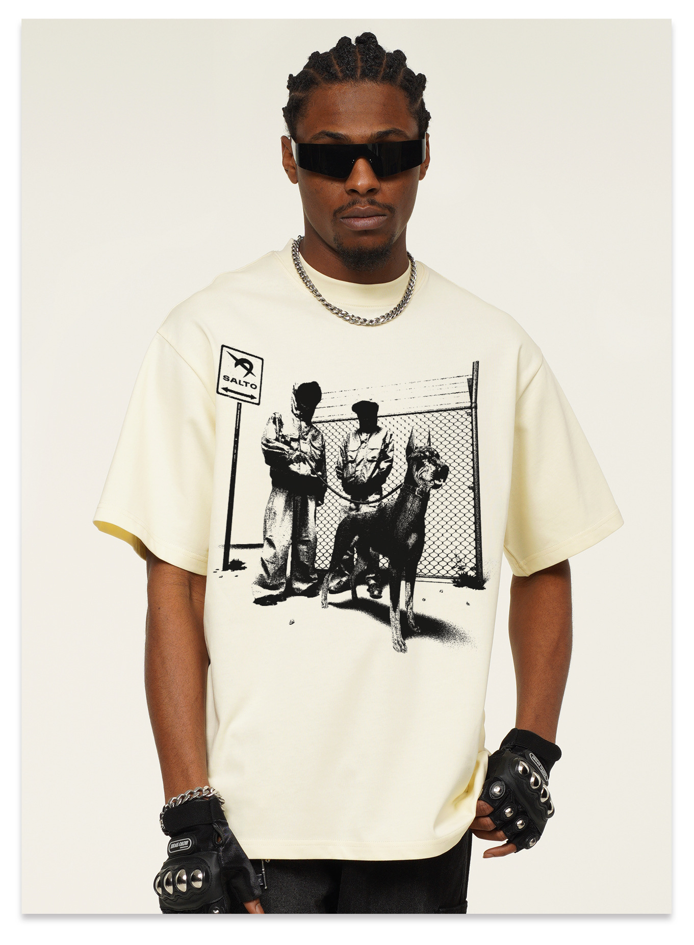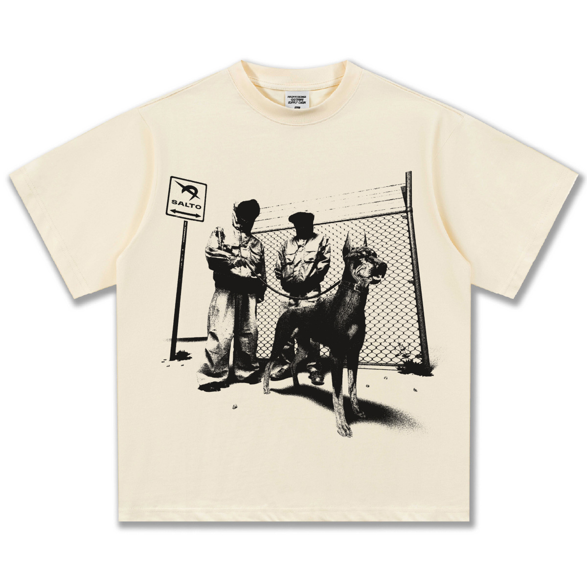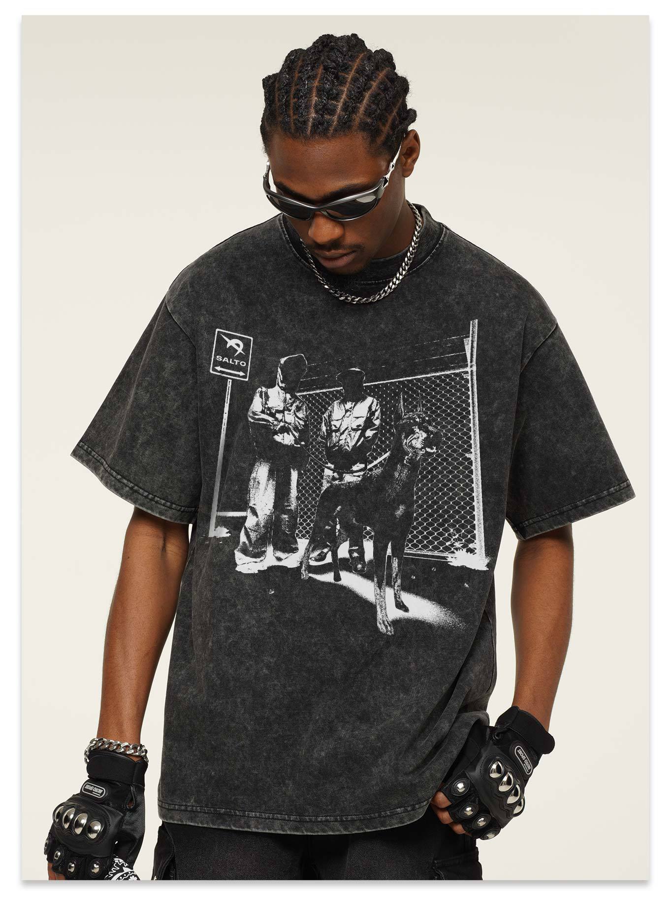 2025 크로스보더 아메리칸 도베르만 레트로 하이 스트리트 300g 순면 반팔 티셔츠 통기성 프린트 반팔 남성용 베이스스토어 가기