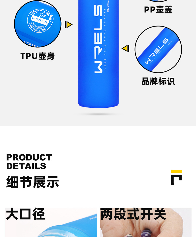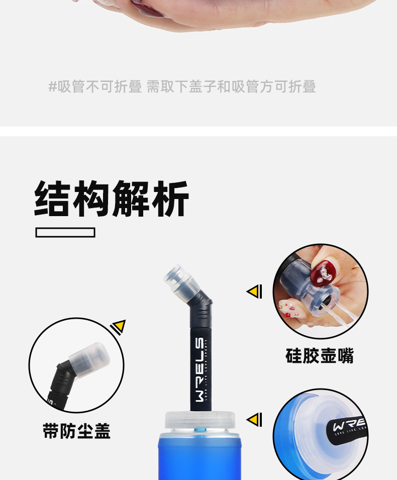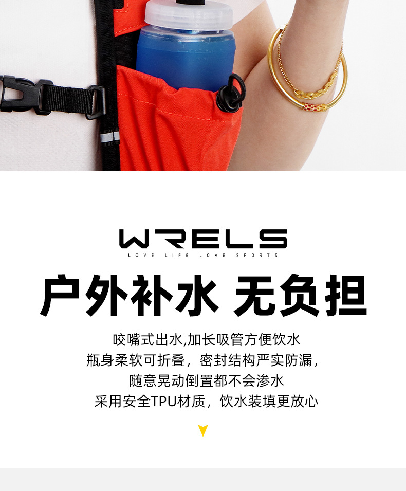 WRELS 트레일 러닝 배낭 접이식 소프트 물병 대구경 밀짚 워터 가방 야외 스포츠 하이킹 및 등산 워터 컵