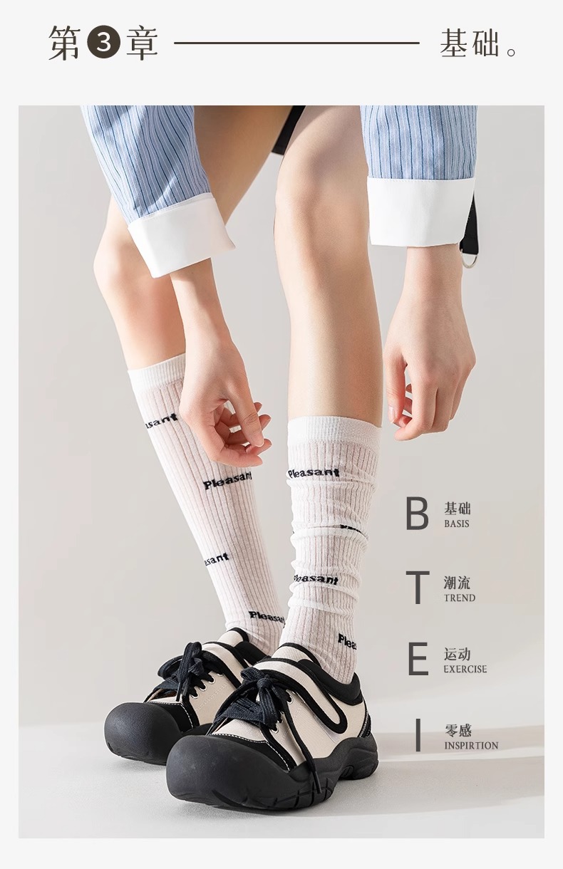 여성을 위한 새로운 스타일의 일본 트렌디 루즈 양말 한국 동대문 긴 레터링 흑백 jk 종아리 양말