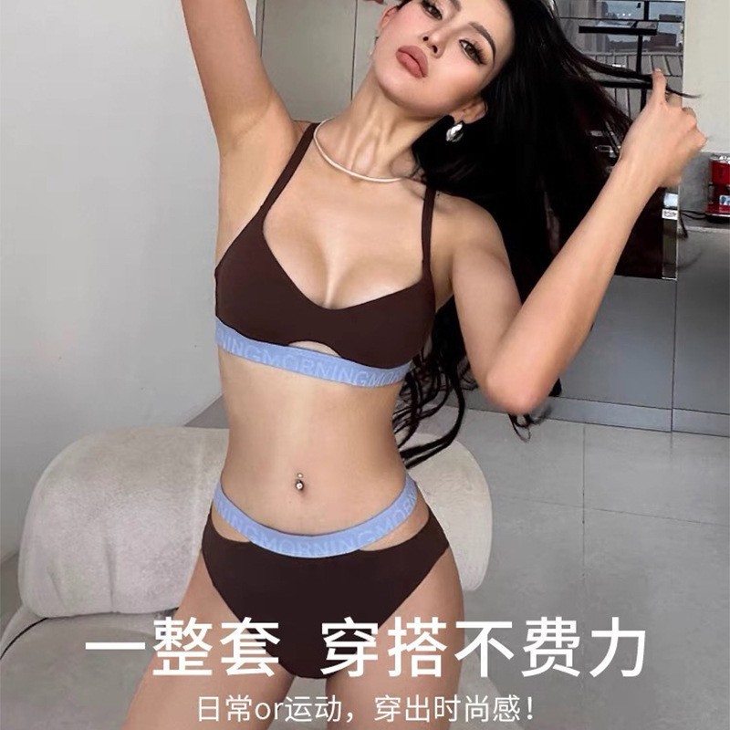 여성용 스포츠 대비색 속옷 세트, 얇고 작은 가슴 푸쉬업, 심리스 섹시 아우터 조끼, 편안한 와이어 프리 브라스토어 가기