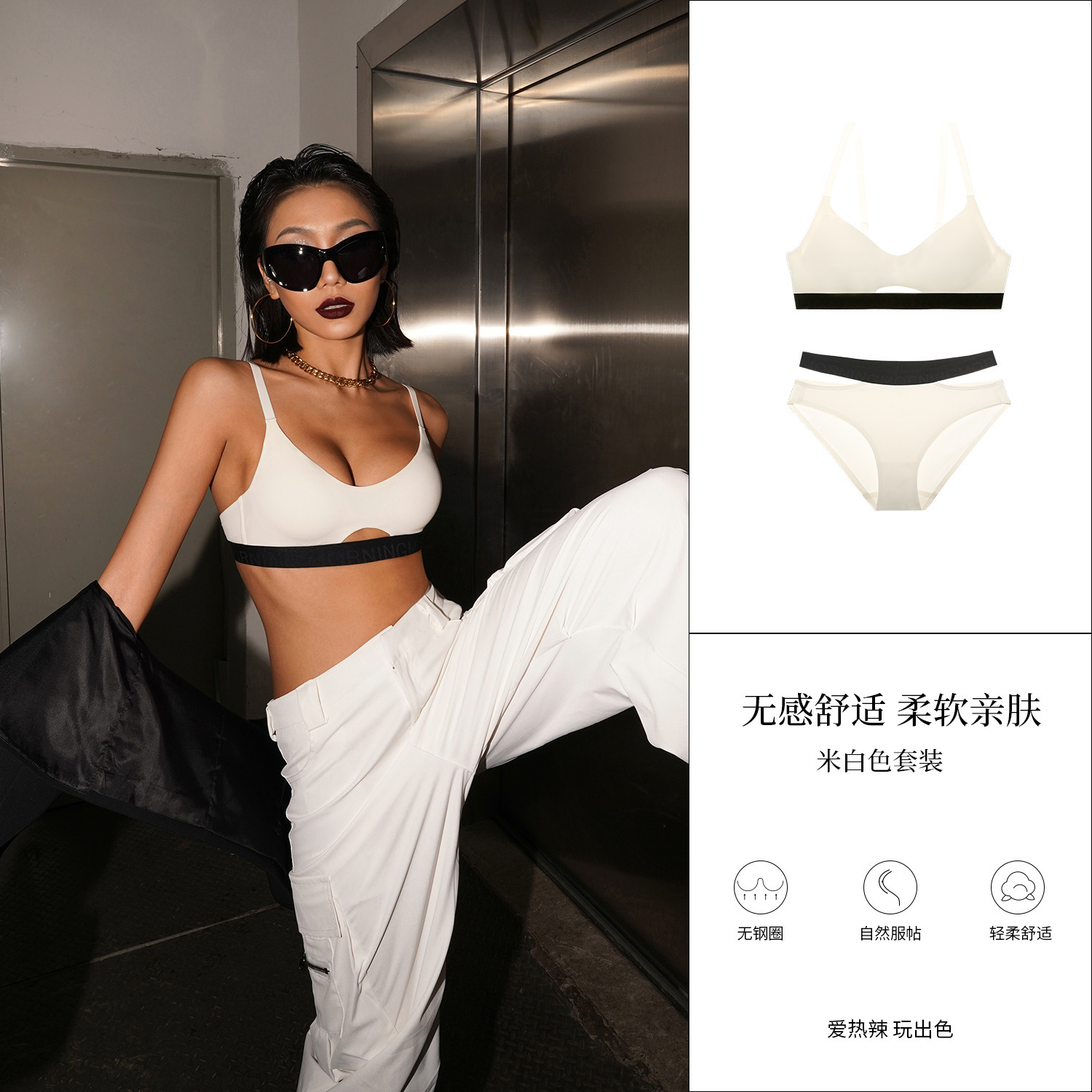 여성용 스포츠 대비색 속옷 세트, 얇고 작은 가슴 푸쉬업, 심리스 섹시 아우터 조끼, 편안한 와이어 프리 브라