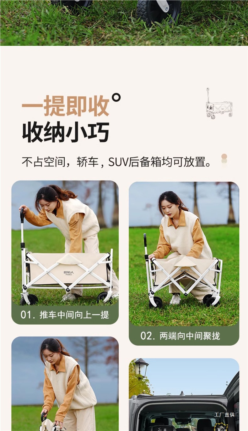 원시인 캠핑 카트 야외 캠프 캠핑 핸드 푸시 접이식 피크닉 카트 소형 트레일러 트레일러 캠핑 카트스토어 가기