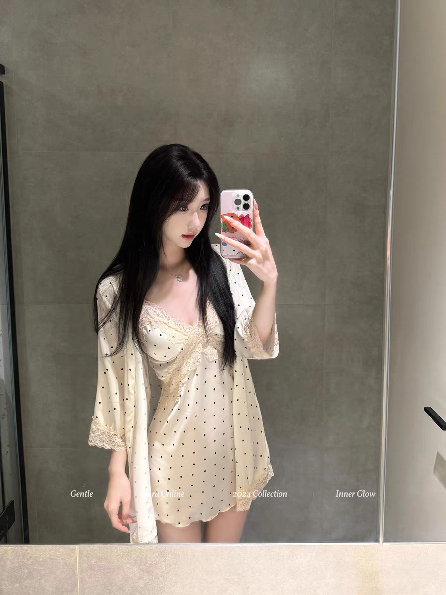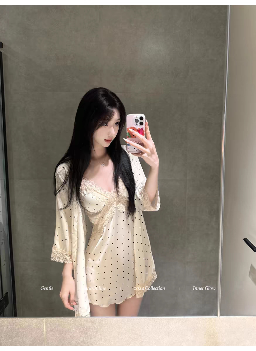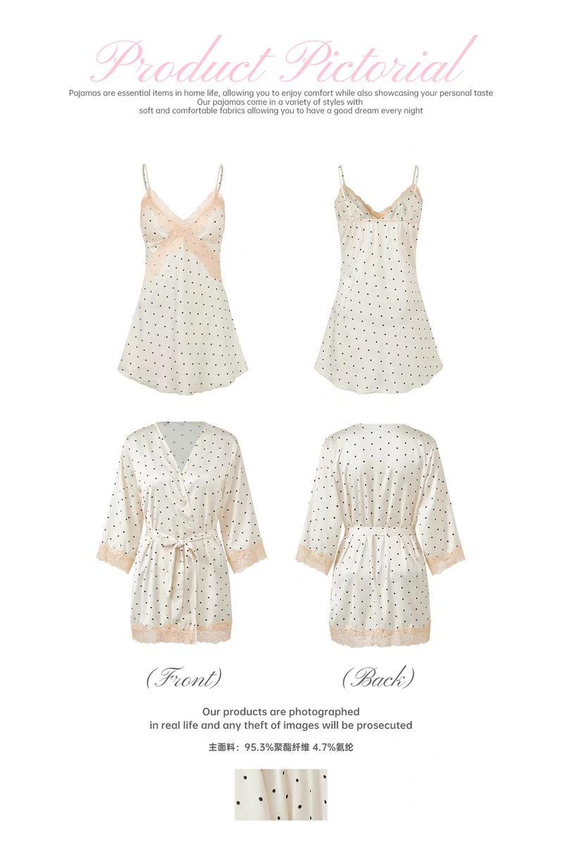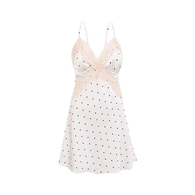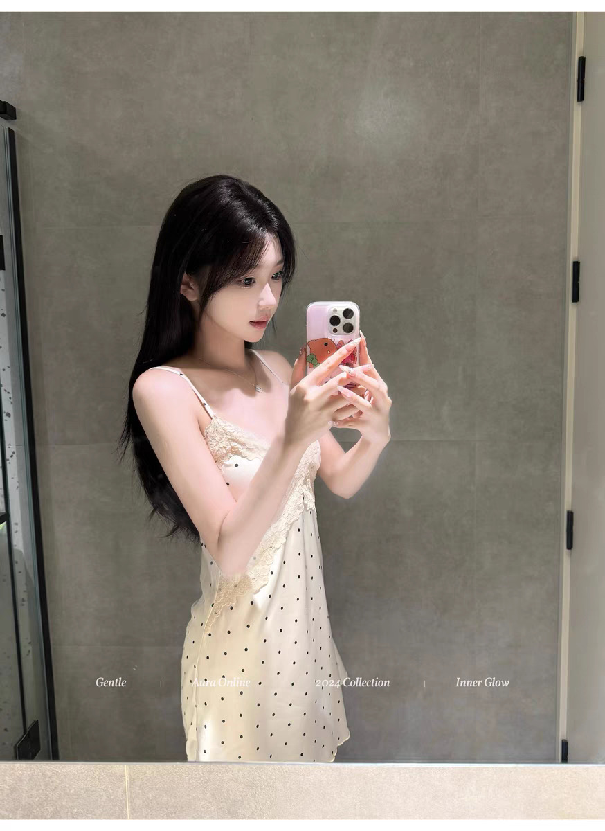 달콤한 인 스타일 여름 새 홈웨어 잠옷 목도리 투피스 세트 레이스 폴카 도트 서스펜더 잠옷 여성용스토어 가기