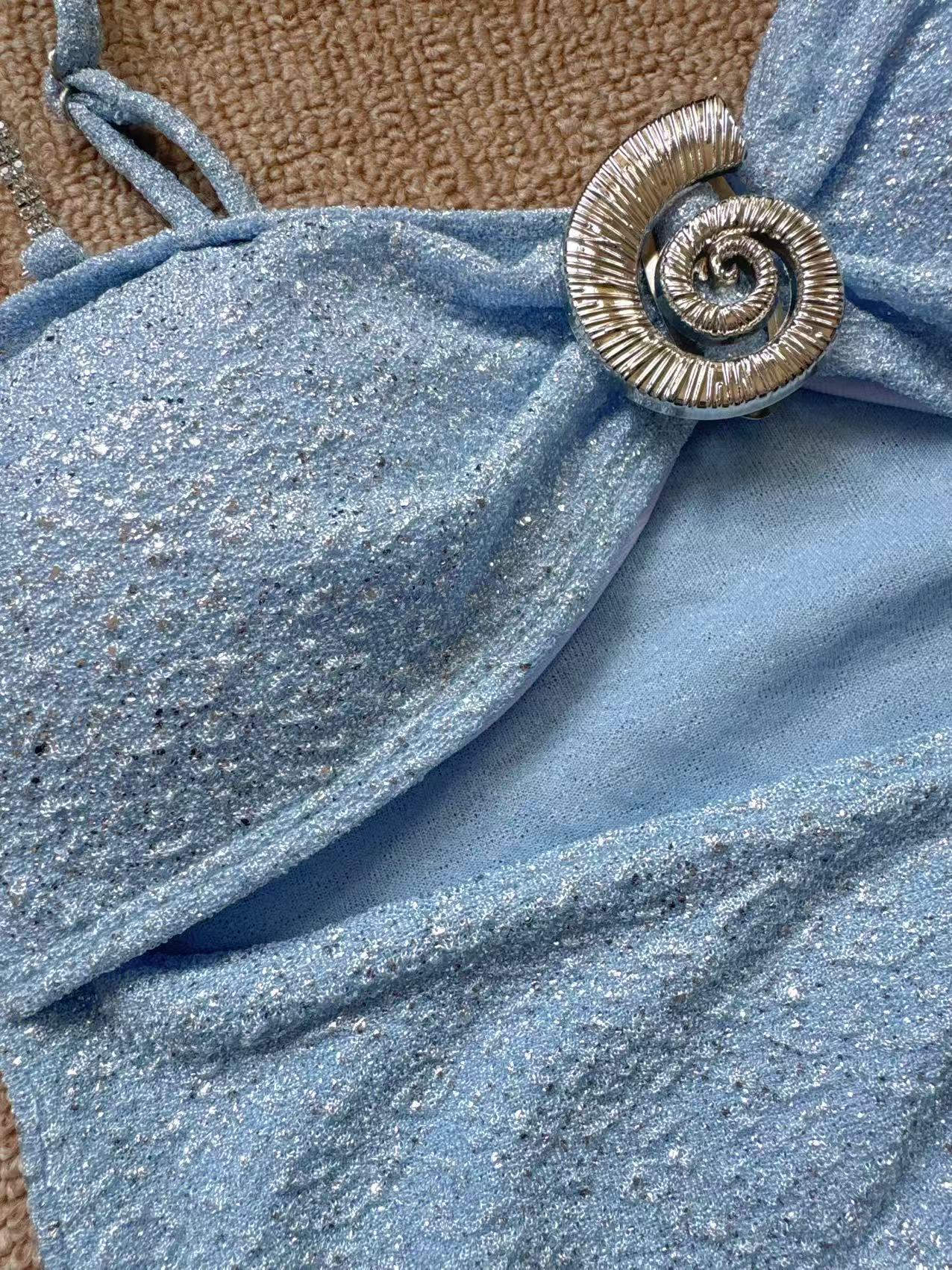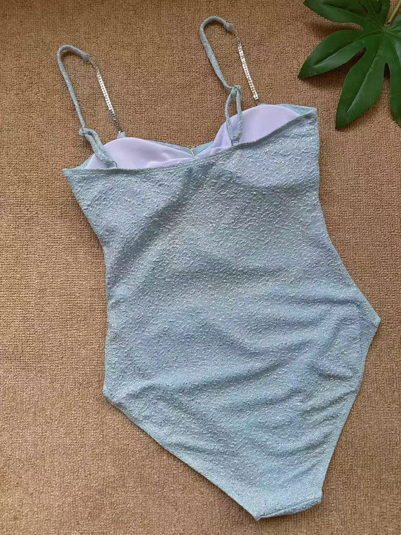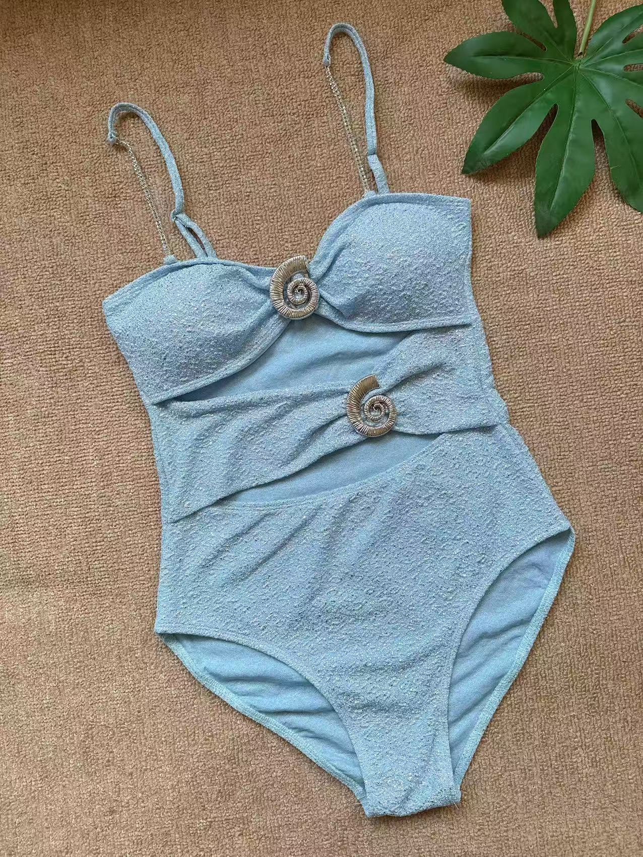 2025 유럽과 미국의 새로운 수영복 금도금 라운드 버클 장식 광택 중공 원피스 수영복 정장 여성용 국경 간 인기 판매