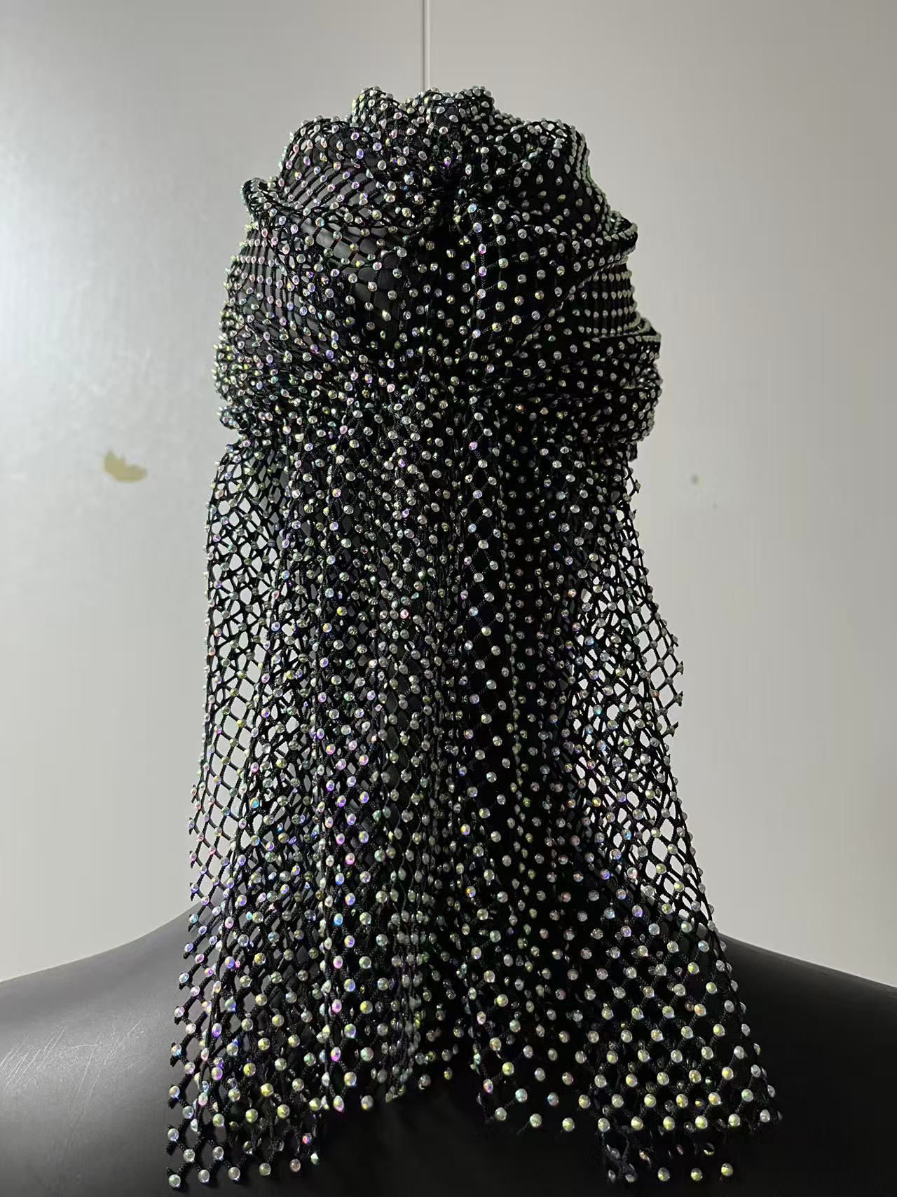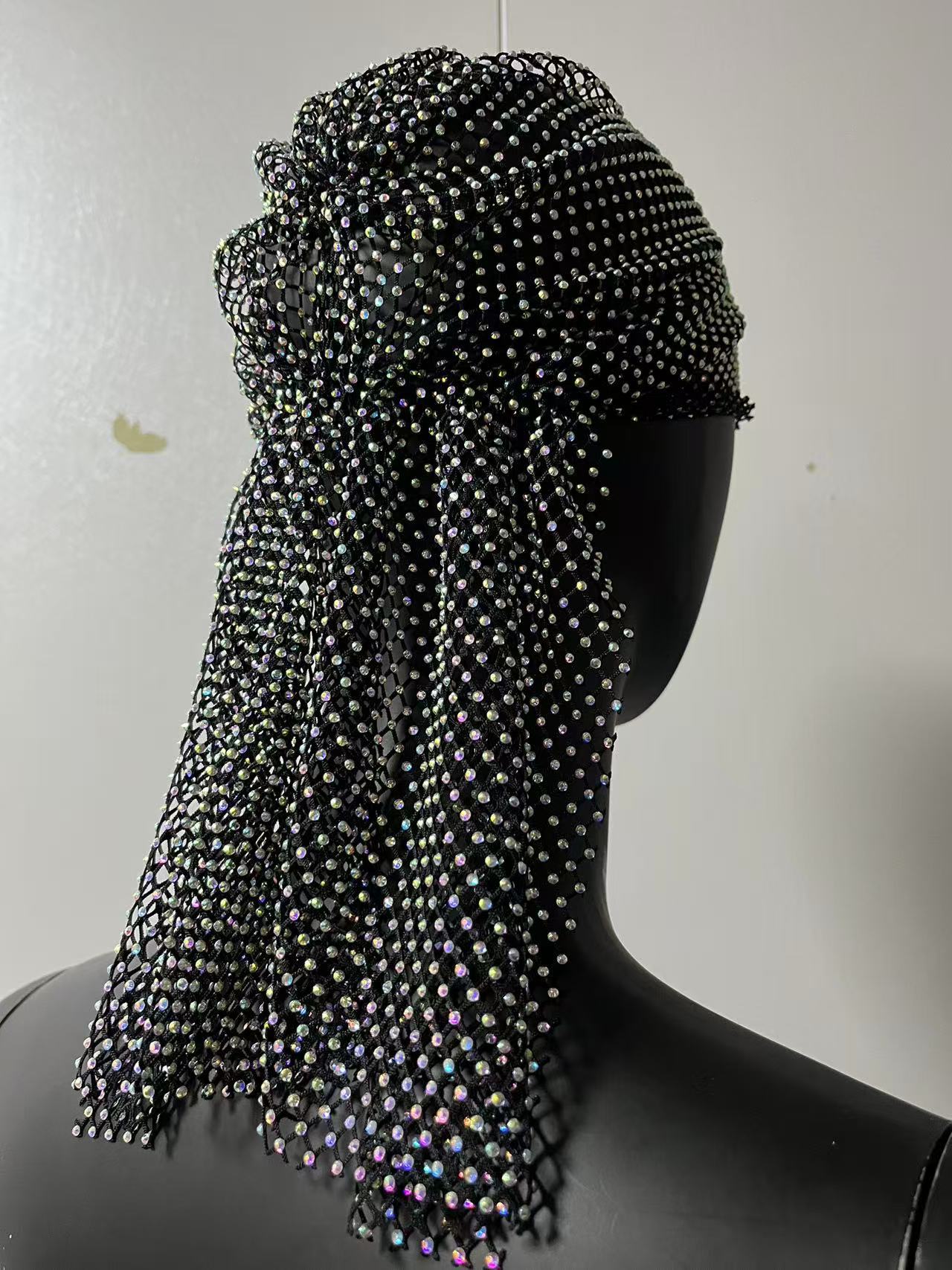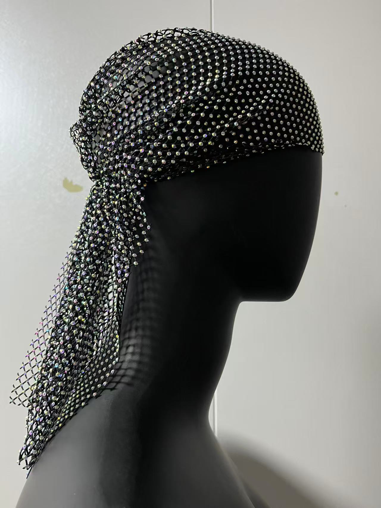 유럽과 미국의 국경 간 액세서리 Amazon의 인기 있는 핫 다이아몬드 탄성 망사 모자 탄성 헤어 밴드 맞춤형 라인 석 헤어 모자