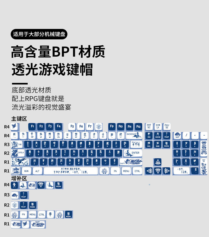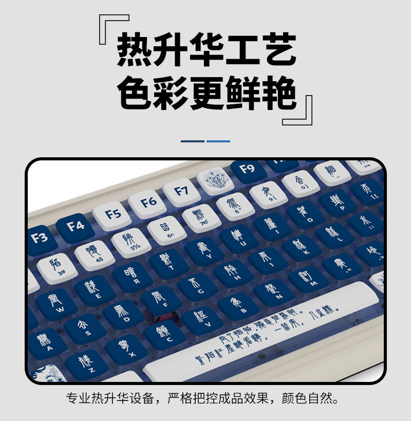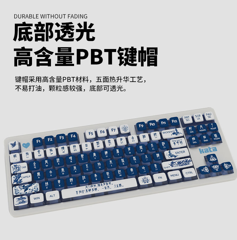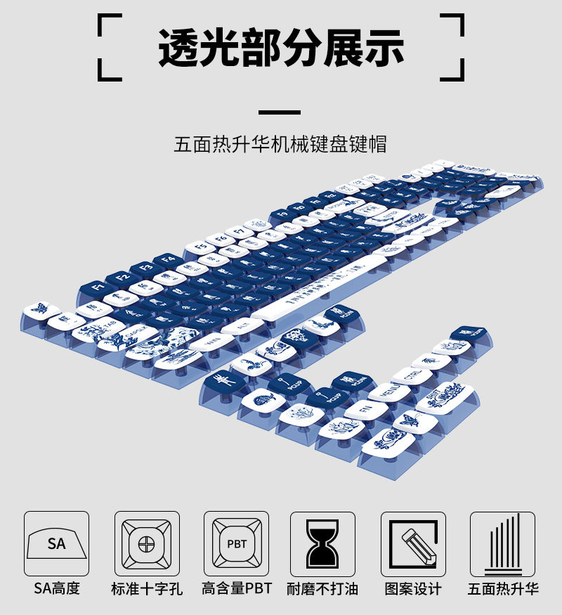 인기 판매 청화백자 기계식 키보드 키캡, 끈적임 없음, 퇴색 없음, 고함량 PBT 소재, 4면 투명 키캡스토어 가기