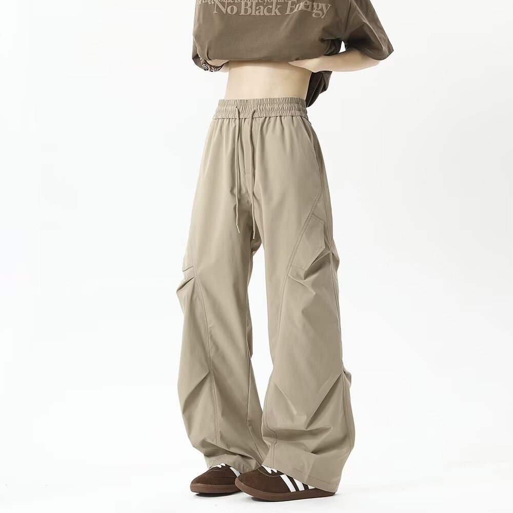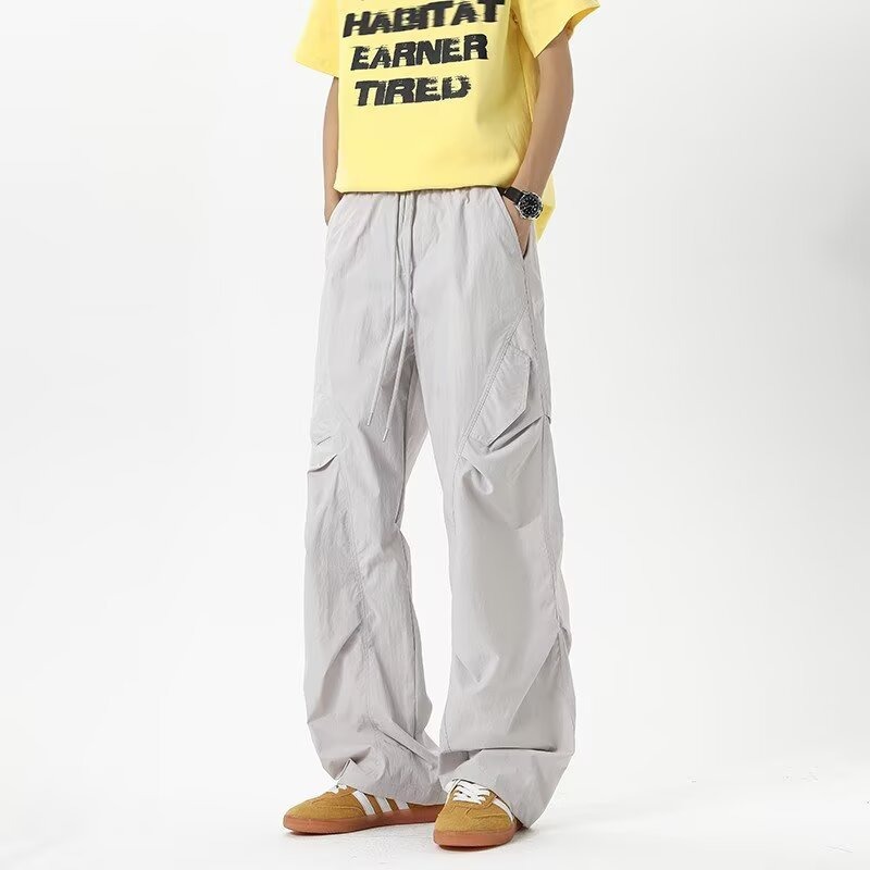 아메리칸 레트로 플리츠 오버올 남성 여름 등산 스포츠 속건성 낙하산 바지 레이지 릴렉스 팬츠