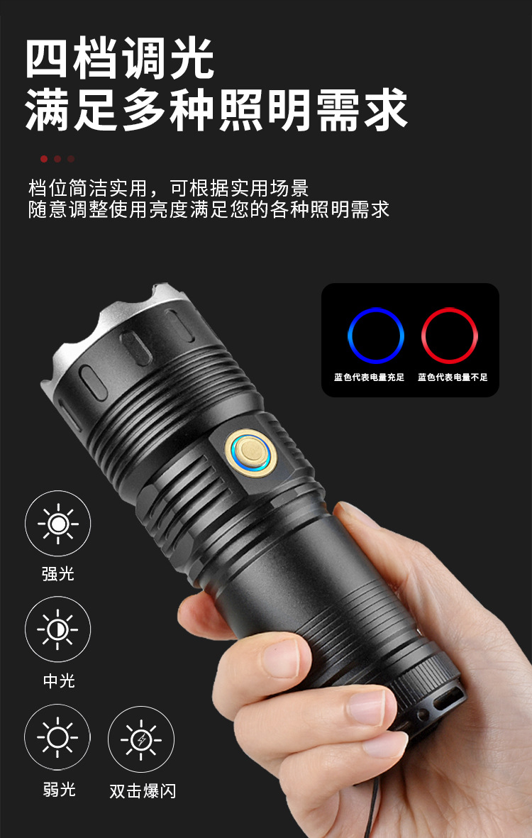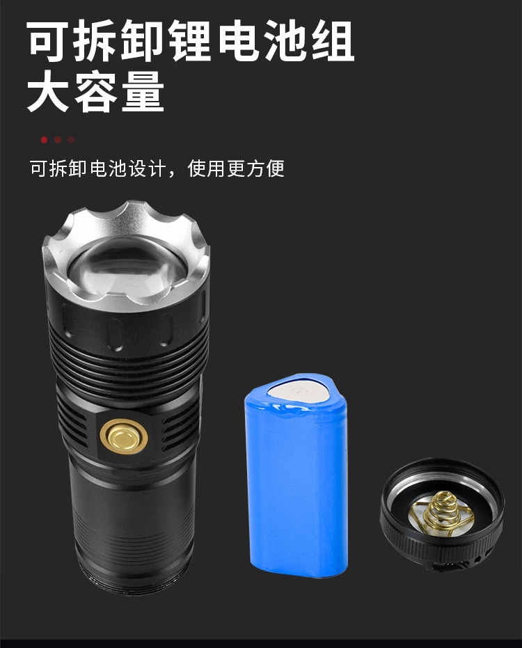 • 단일 검정색 손전등 + 충전 케이블 + 선물 상자 + 5000mAh 배터리 팩
