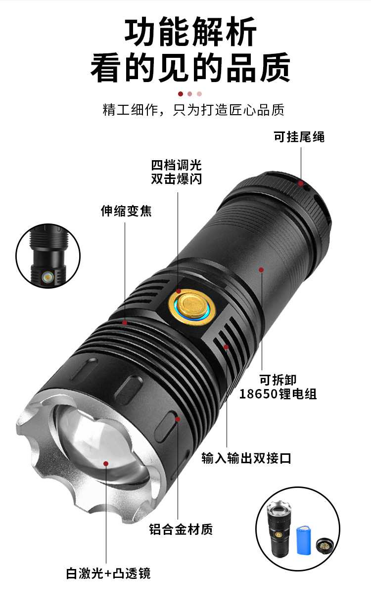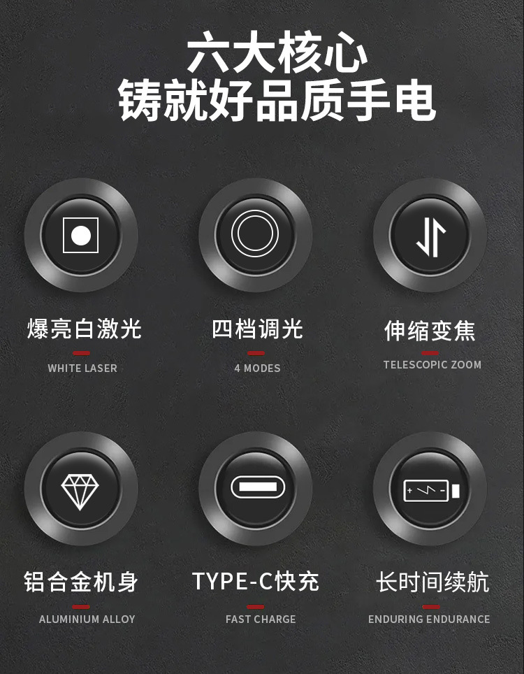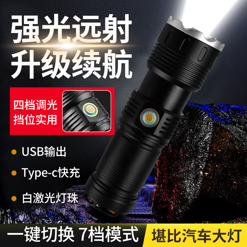 드래곤 볼 화이트 레이저 손전등 국경 간 강한 빛 슈퍼 밝은 장거리 다기능 휴대용 야외 필수 비상 조명스토어 가기