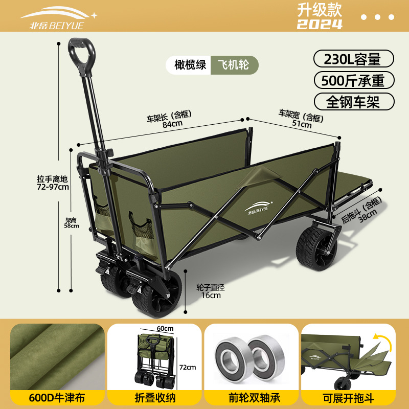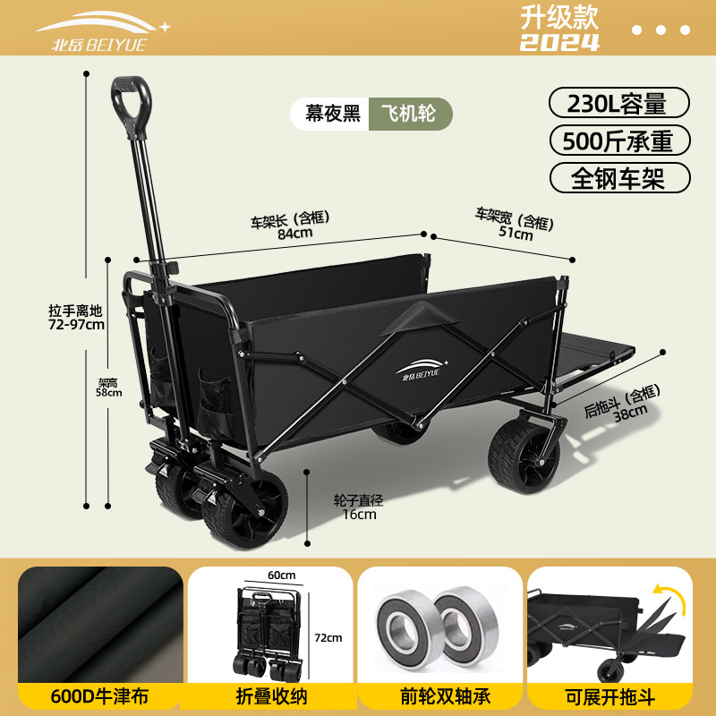 Beiyue 캠핑카 대형 야외 피크닉 카트 캠프 트레일러 트롤리 트롤리 테이블 보드 스톨 야외 전시회