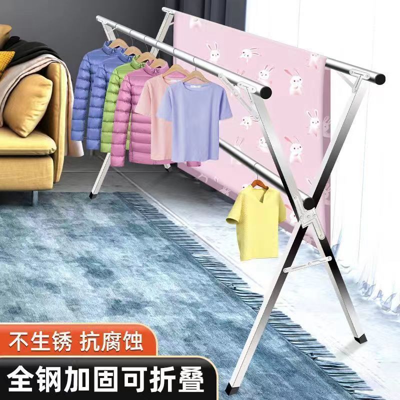 두꺼운 스테인레스 스틸 X자형 옷 건조대 바닥 스탠딩 수직 접이식 이불 건조대 실내 및 실외 이동식 개폐식 옷 건조대