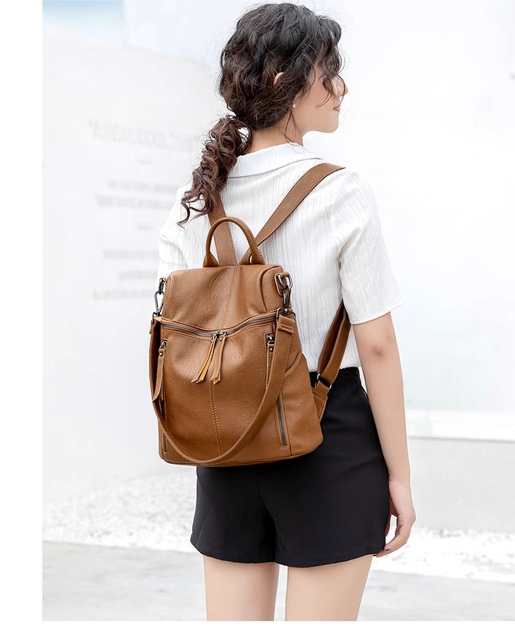 부드러운 가죽 배낭 경량 여성 야외 배낭 한국어 버전 새로운 대용량 틈새 캐주얼 방수 여행 가방