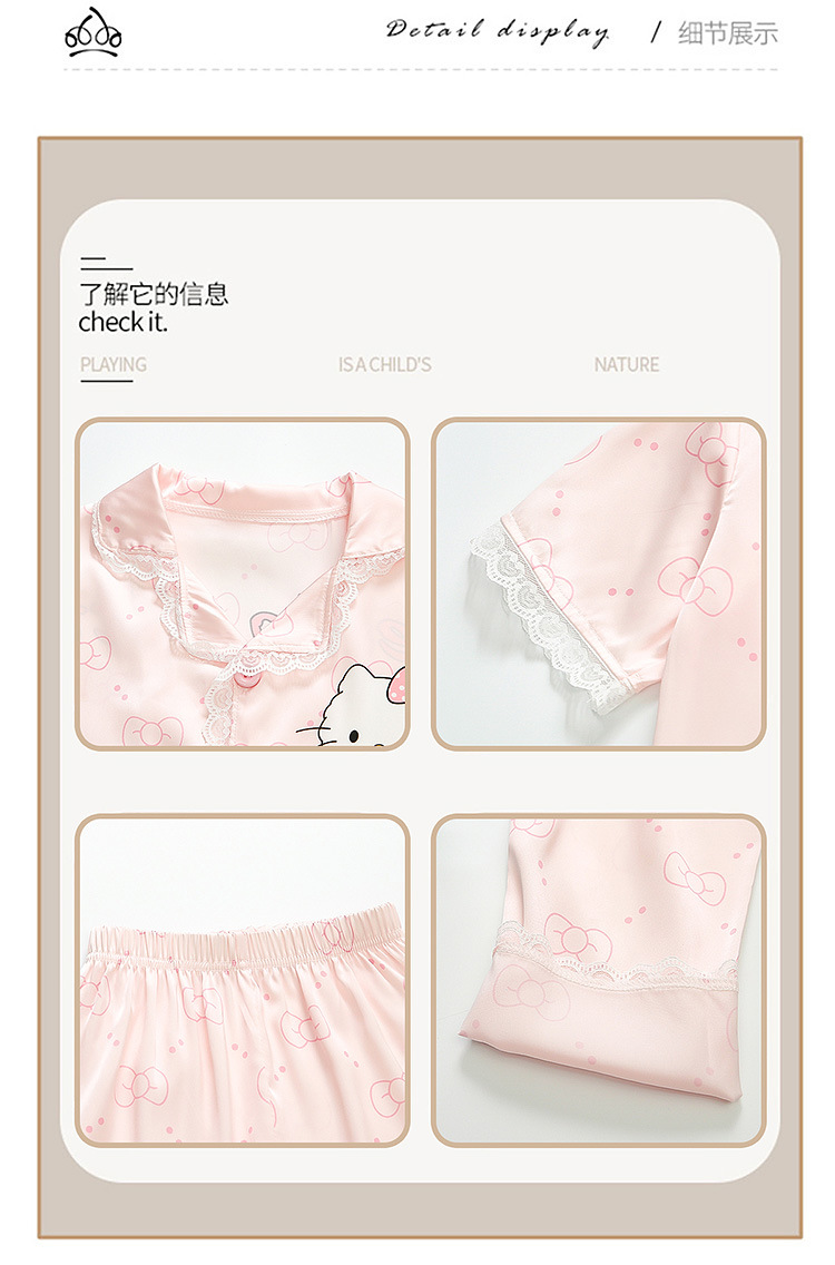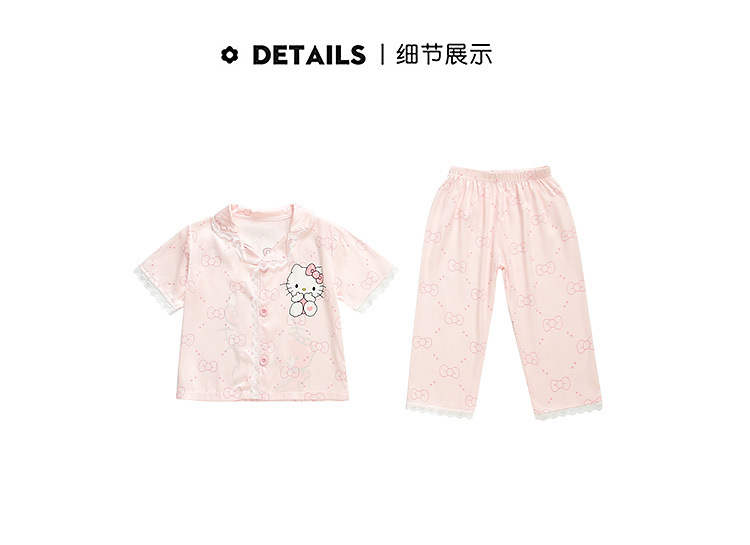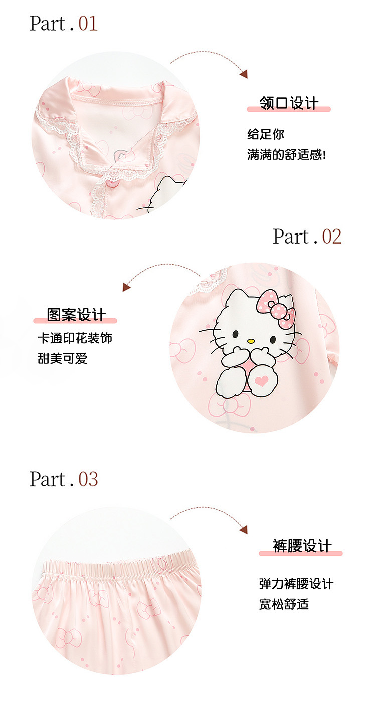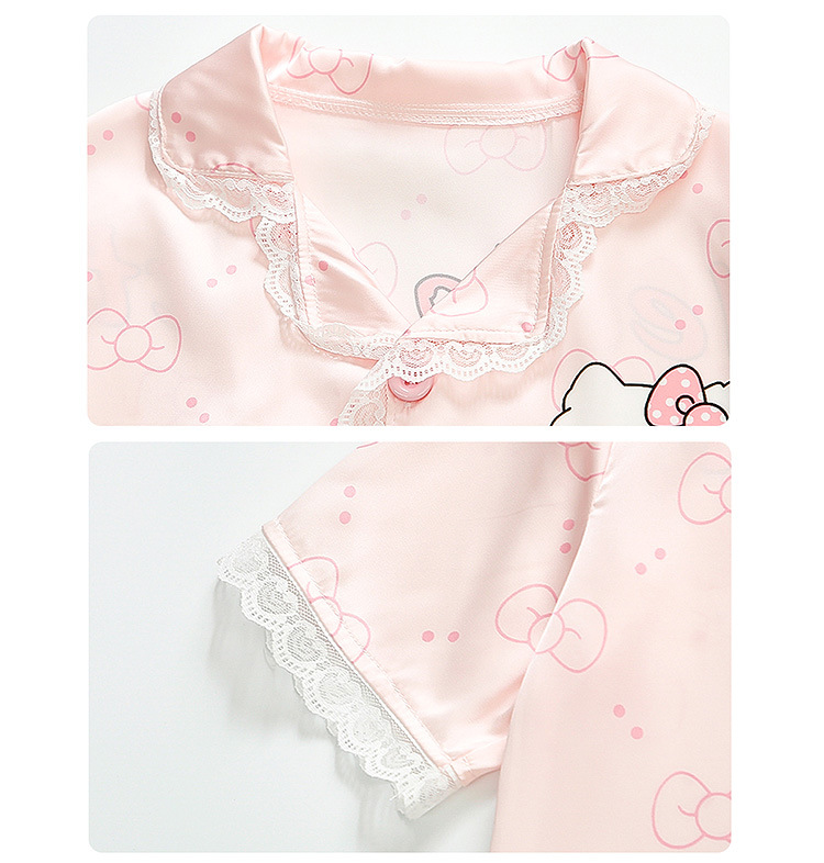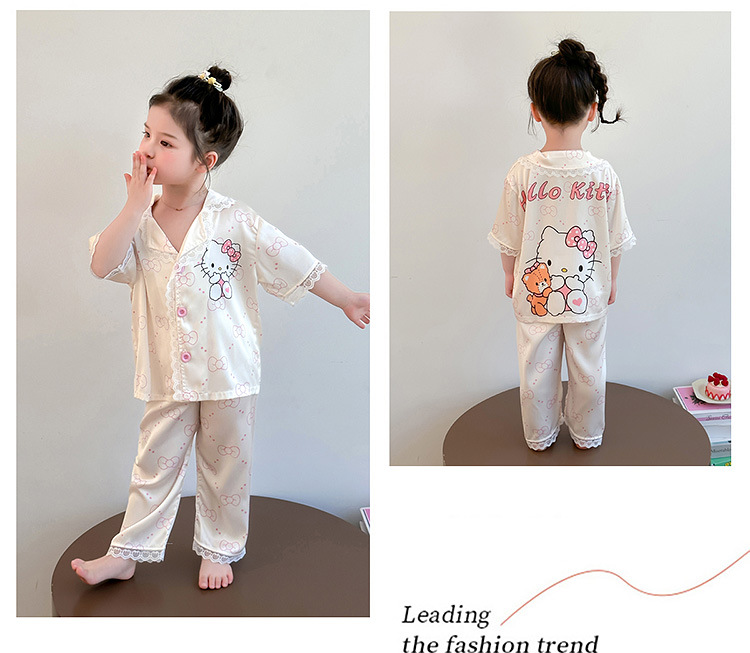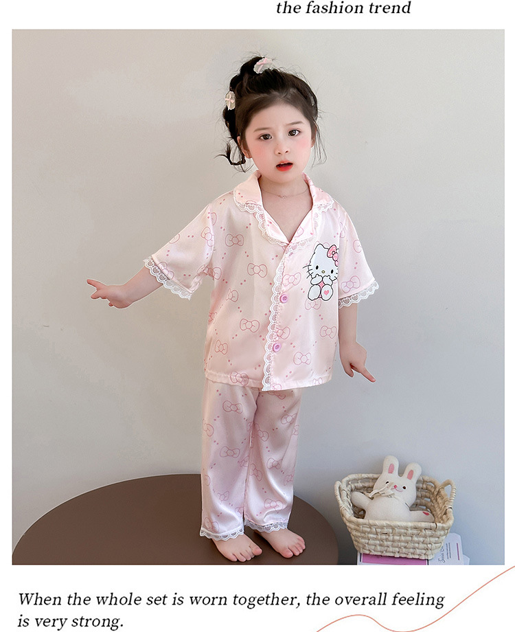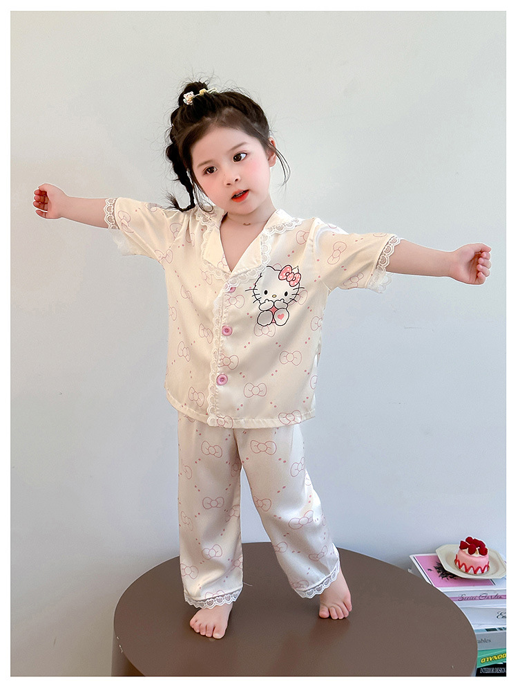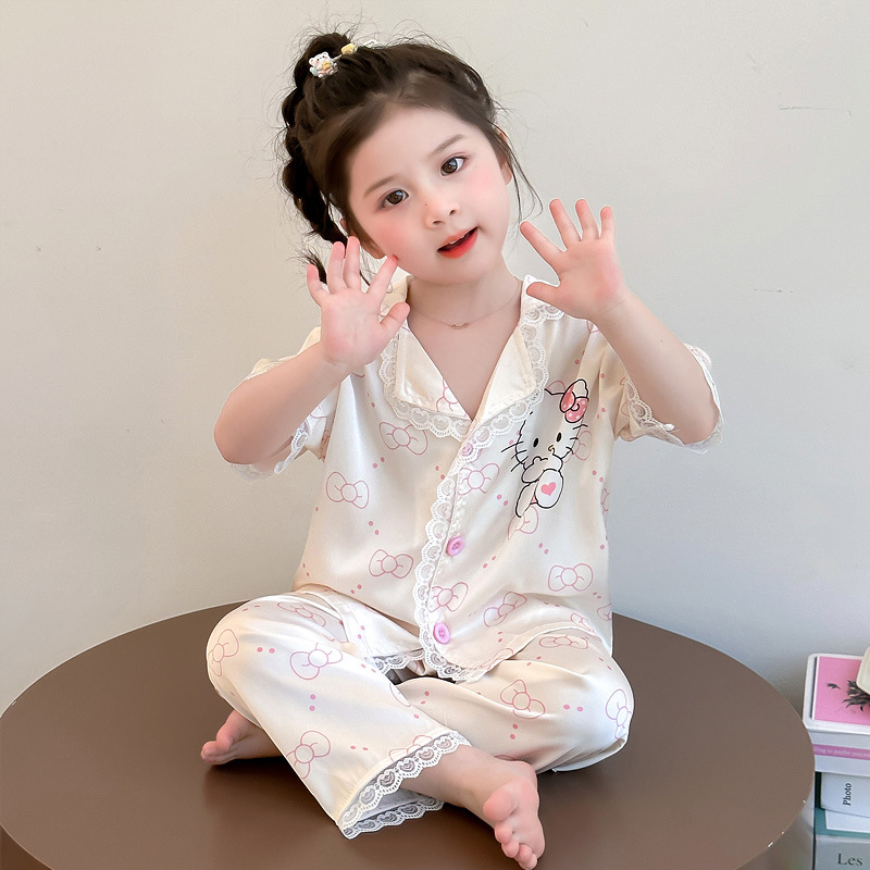 여자 잠자는 얼음 실크 옷 2025 새로운 어린이 여름 반팔 레이스 양복 만화 귀여운 가정 옷 에어컨 옷