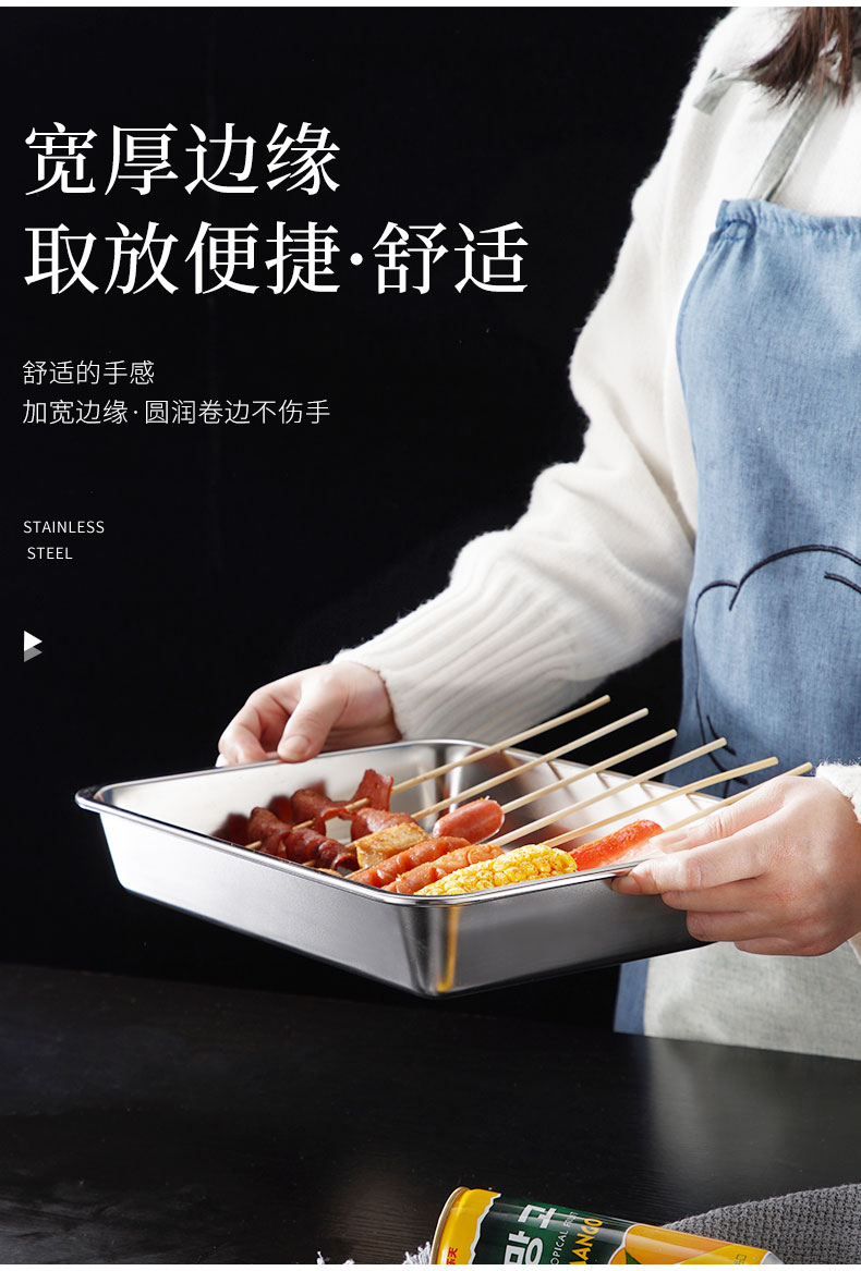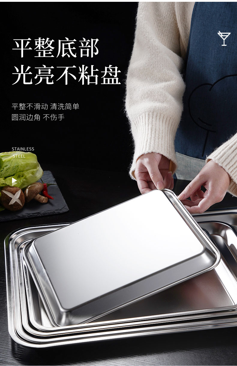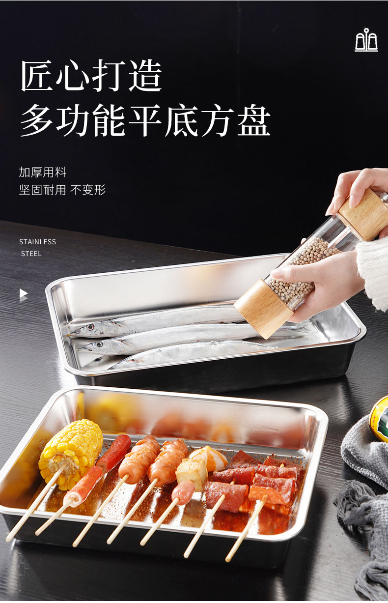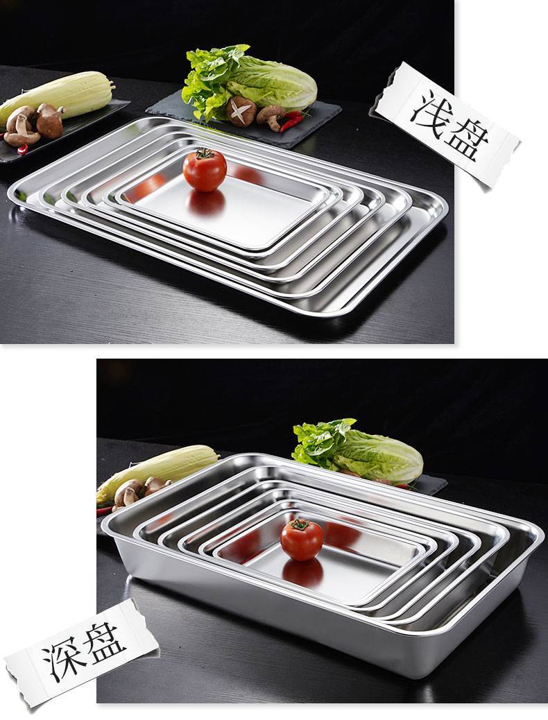 두꺼운 스테인레스 스틸 접시 직사각형 일본 사각형 접시 트레이 깊은 접시 만두 찐 밥 접시 오븐 베이킹 팬 플랫 트레이스토어 가기