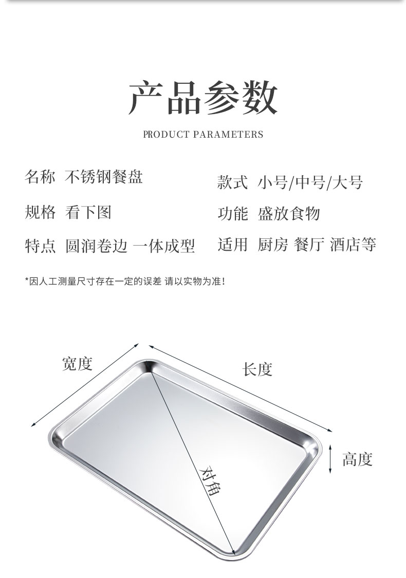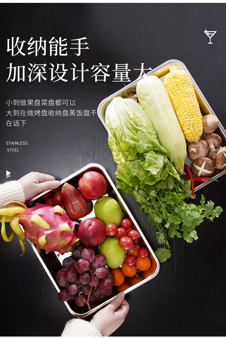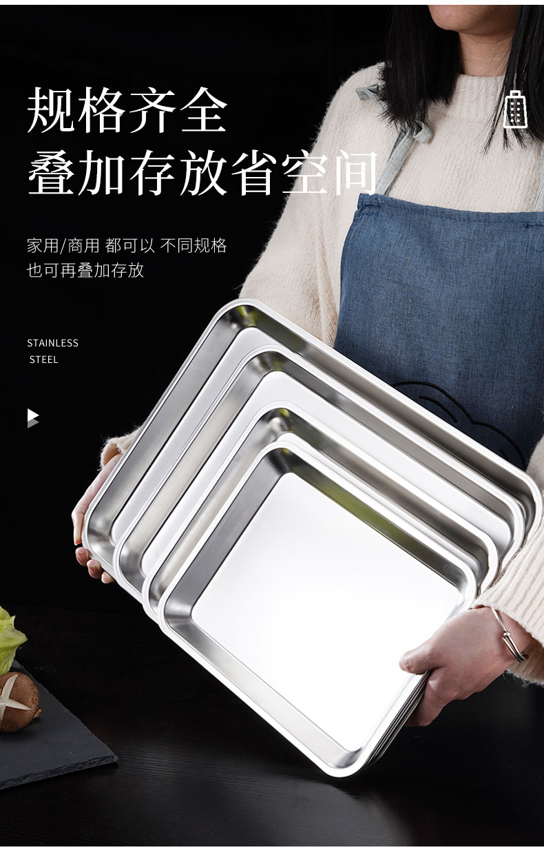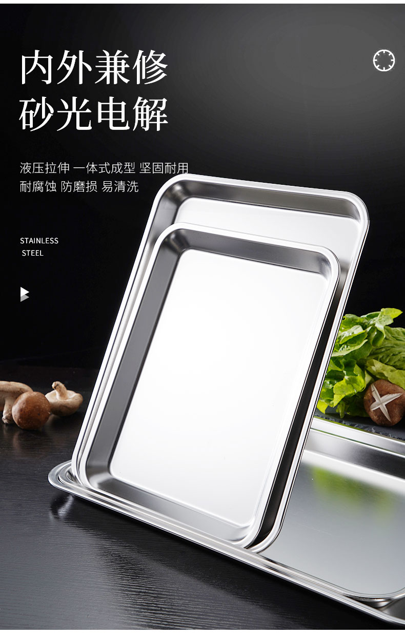 두꺼운 스테인레스 스틸 접시 직사각형 일본 사각형 접시 트레이 깊은 접시 만두 찐 밥 접시 오븐 베이킹 팬 플랫 트레이스토어 가기