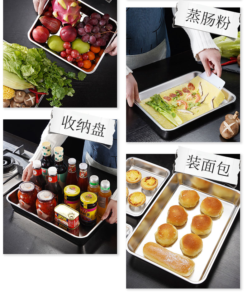 두꺼운 스테인레스 스틸 접시 직사각형 일본 사각형 접시 트레이 깊은 접시 만두 찐 밥 접시 오븐 베이킹 팬 플랫 트레이
