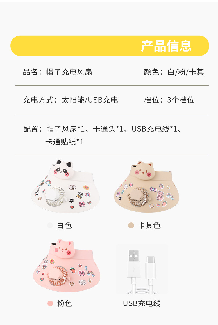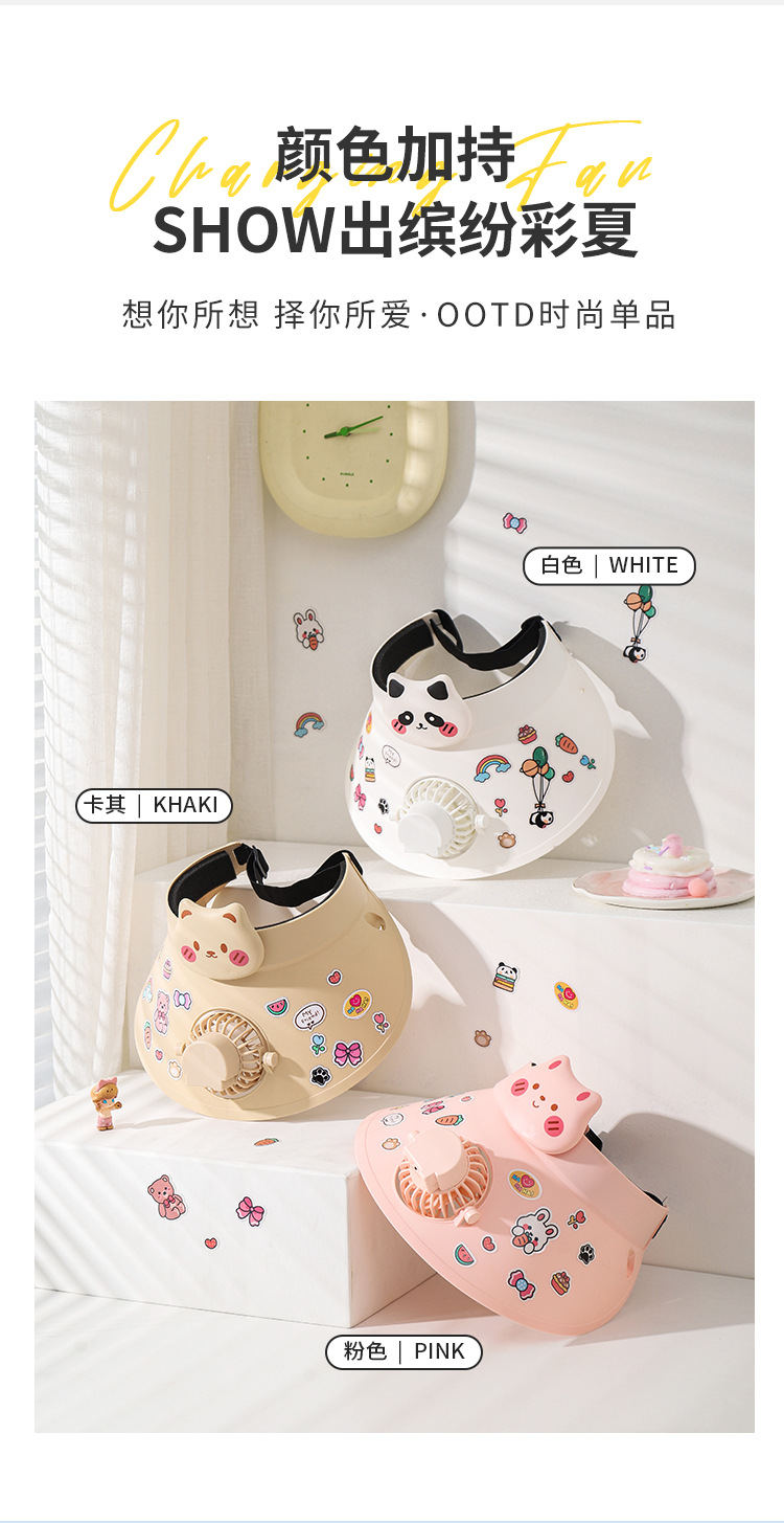 만화 창조적 인 새로운 태양 모자 팬 휴대용 야외 소녀 어린이 여행 휴대 여름 좋은 것들 규칙