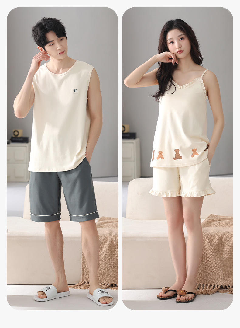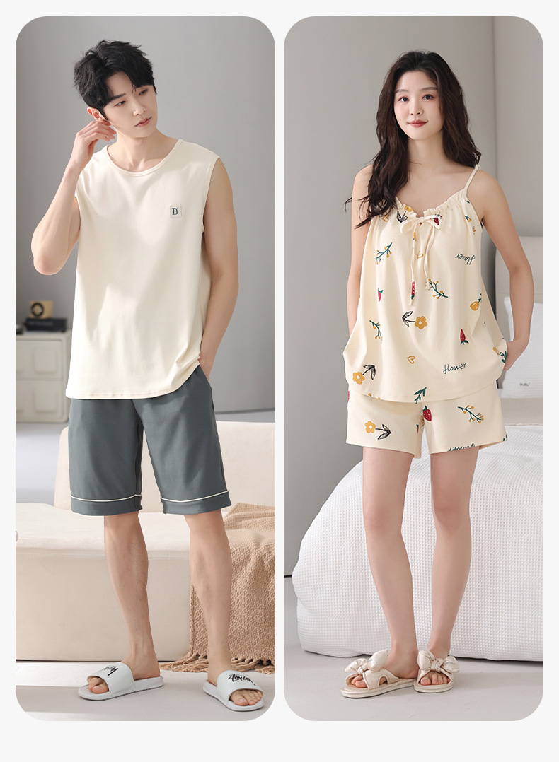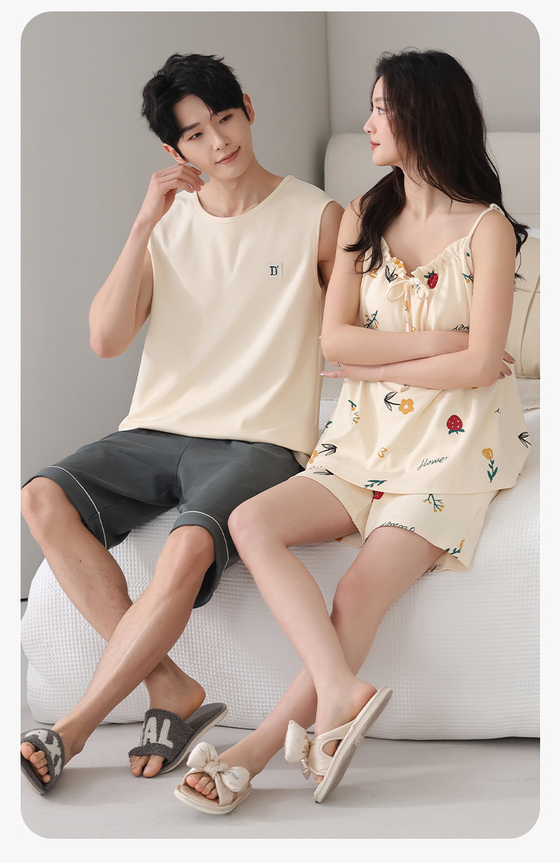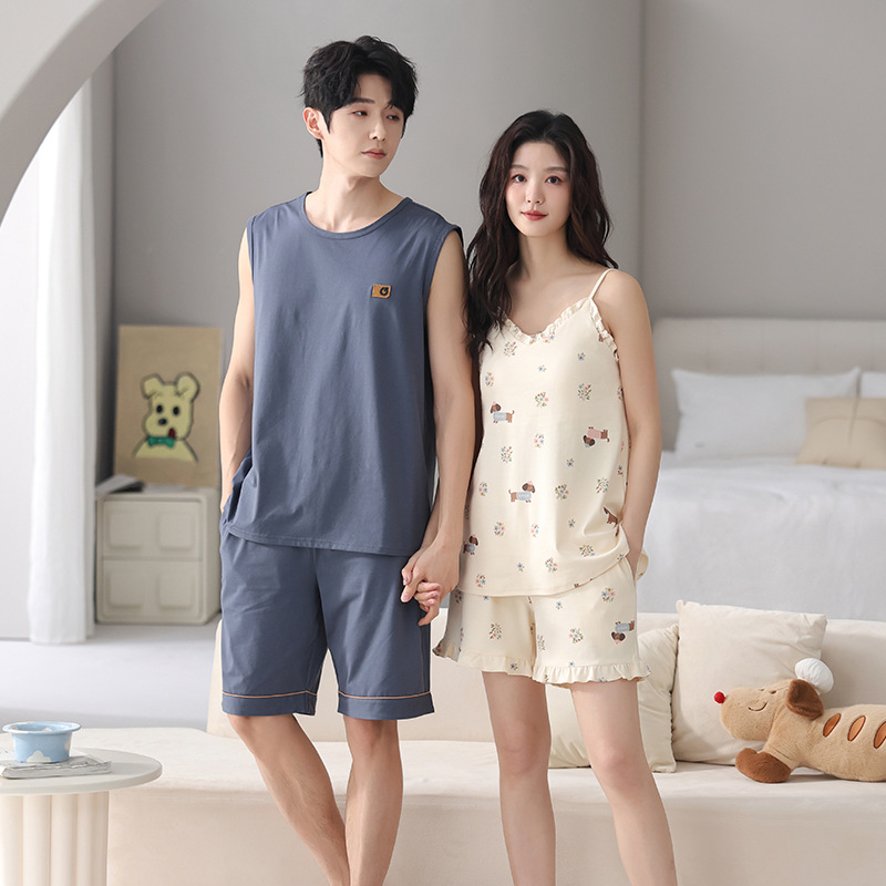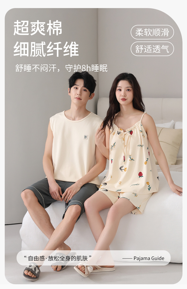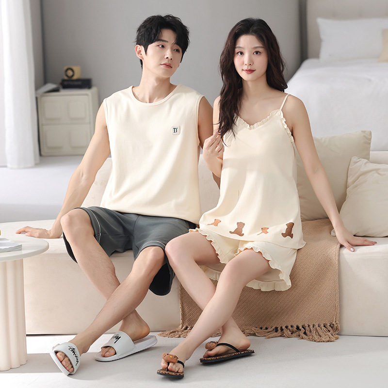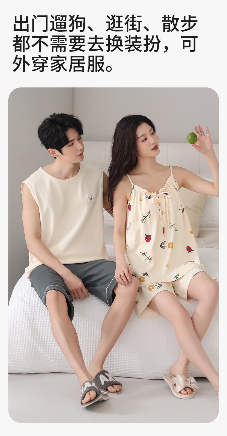 남녀 커플을 위한 여름 파자마, 가슴 패드가 내장되어 있어 외부에 착용 가능, 멜빵, 모달 코튼, 시원한 홈웨어스토어 가기