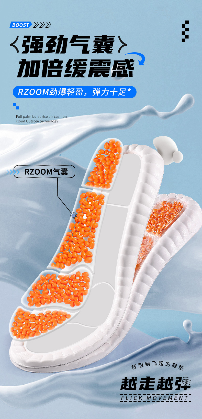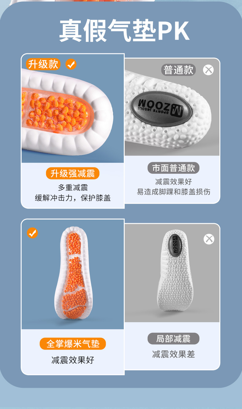 풀팜 줌 에어쿠션 스포츠 깔창, 충격흡수, 고탄성, 남성용 땀흡수, 탈취, 두꺼워진 농구 런닝 스페셜 여성용스토어 가기