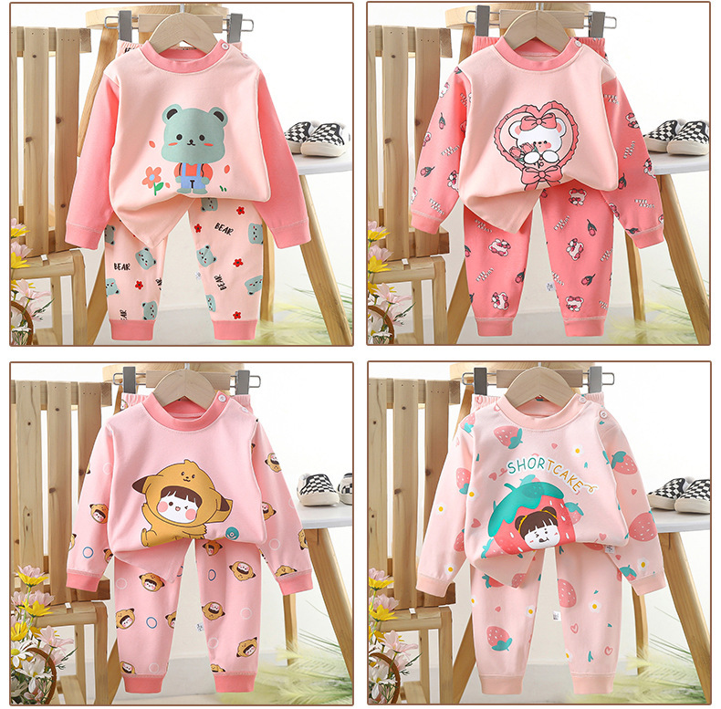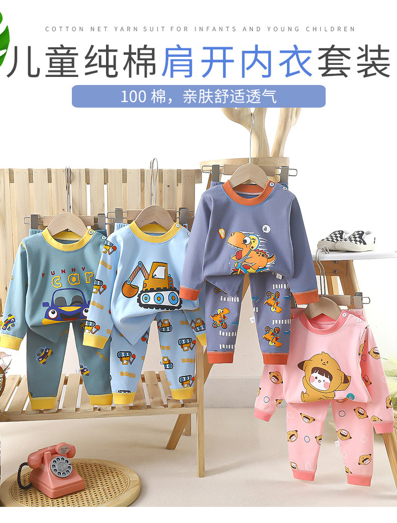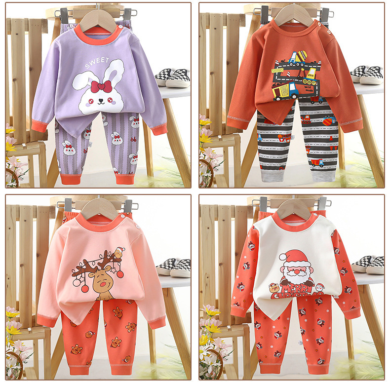 소년과 소녀를위한 순수 코튼 아동 속옷 세트, 가을 옷과 긴 바지, 아기 옷, 따뜻한 가정복, 가을 겨울 아동 의류 도매스토어 가기