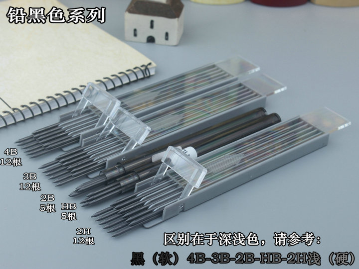 2.0 자동 리드 연장형 2mm 두께 드로잉 스케치 2H/HB/2B/3B/4B/5B/6B 다양한 색상으로 제공