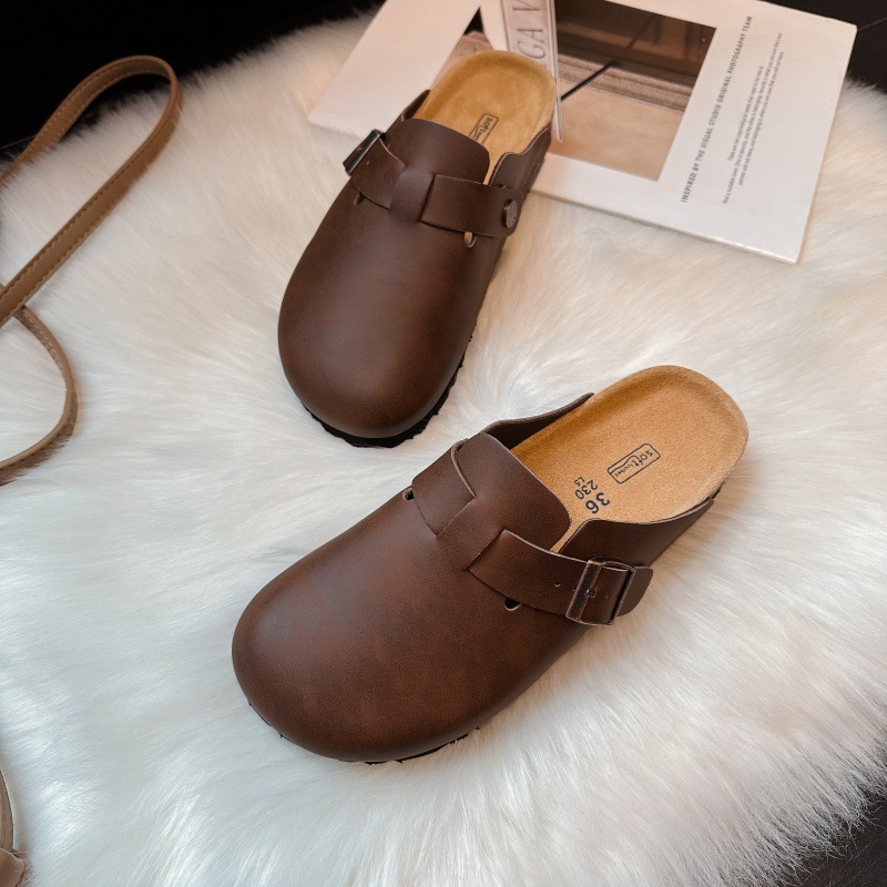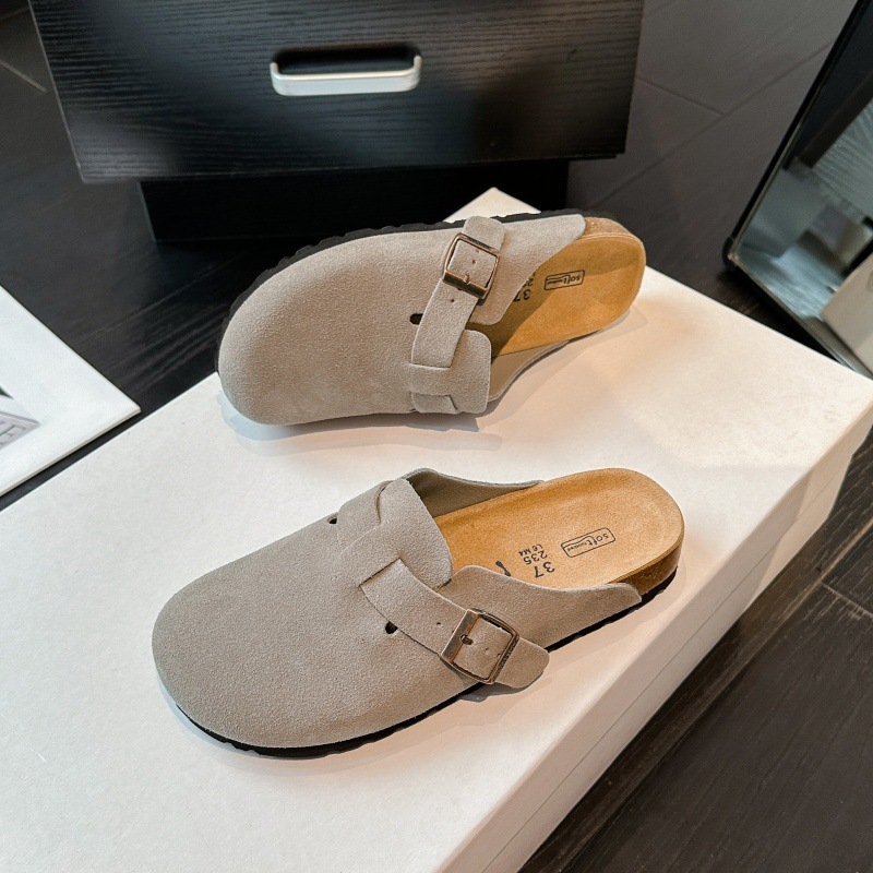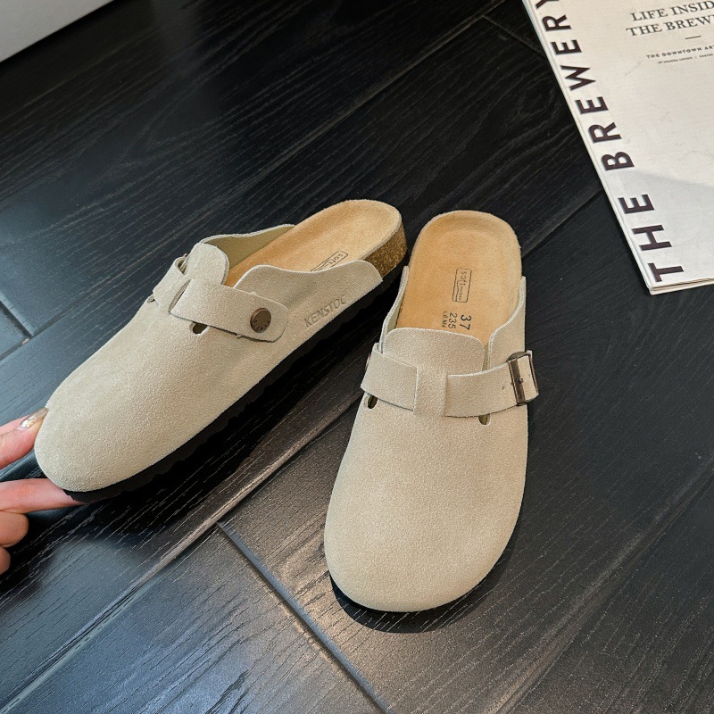 BK 남녀공용 천연가죽 버켄스탁 신발 2025 신형 코르크 두꺼운 밑창 캐주얼 아우터 슬립온 발가락 반슬리퍼 버켄스탁 신발스토어 가기