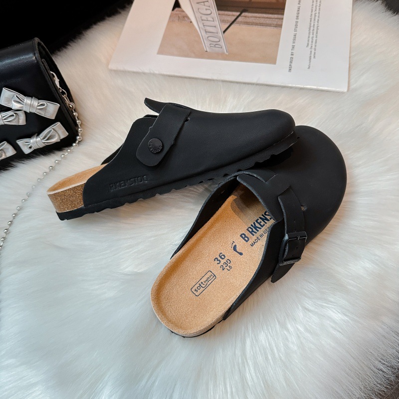 BK 남녀공용 천연가죽 버켄스탁 신발 2025 신형 코르크 두꺼운 밑창 캐주얼 아우터 슬립온 발가락 반슬리퍼 버켄스탁 신발