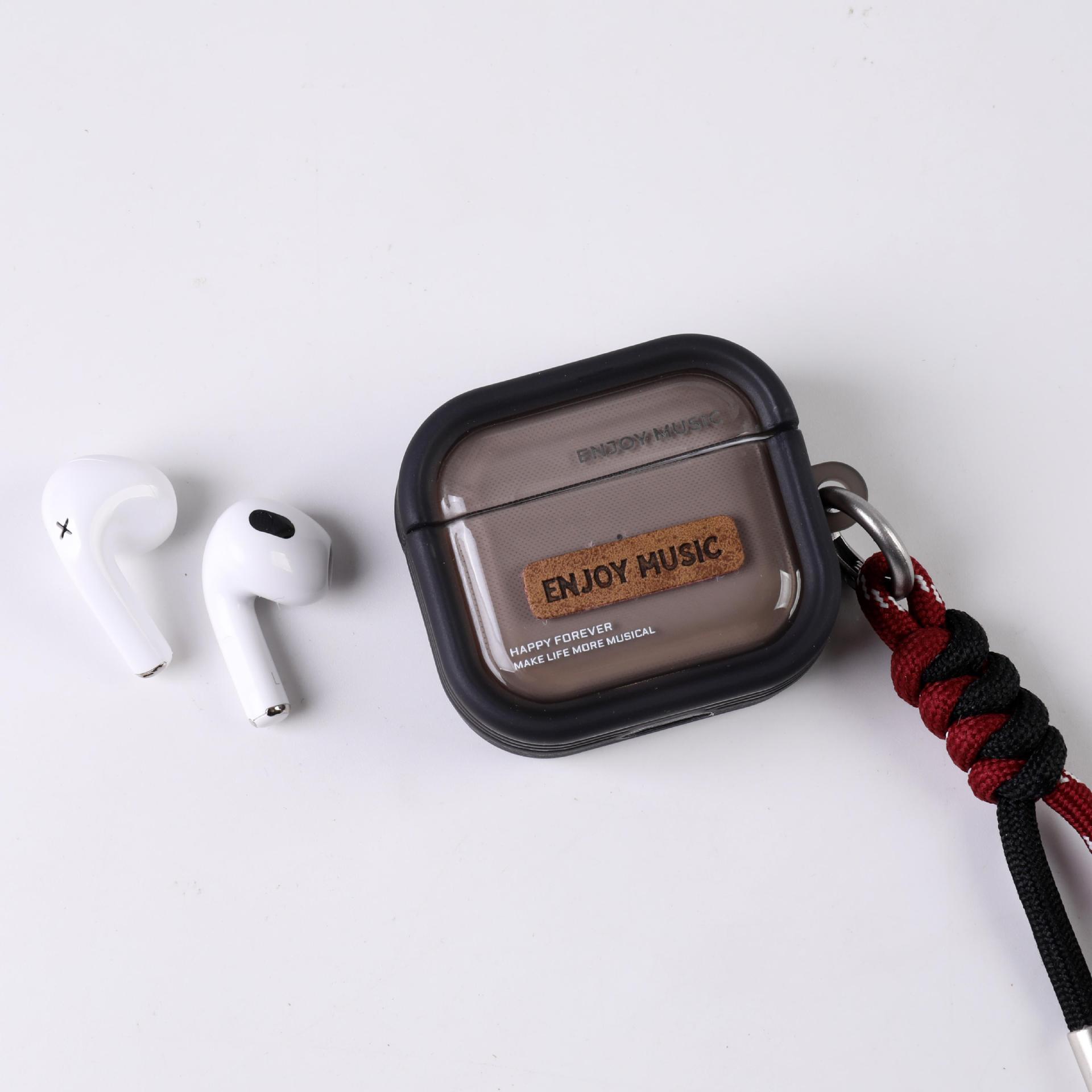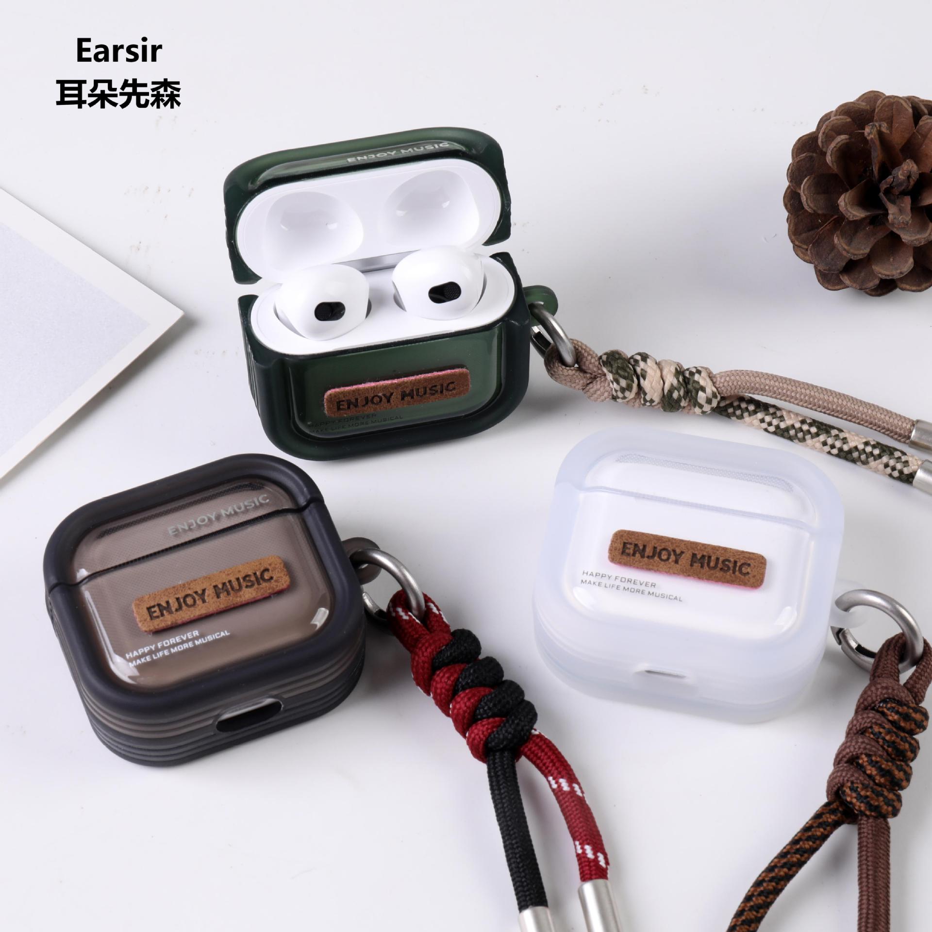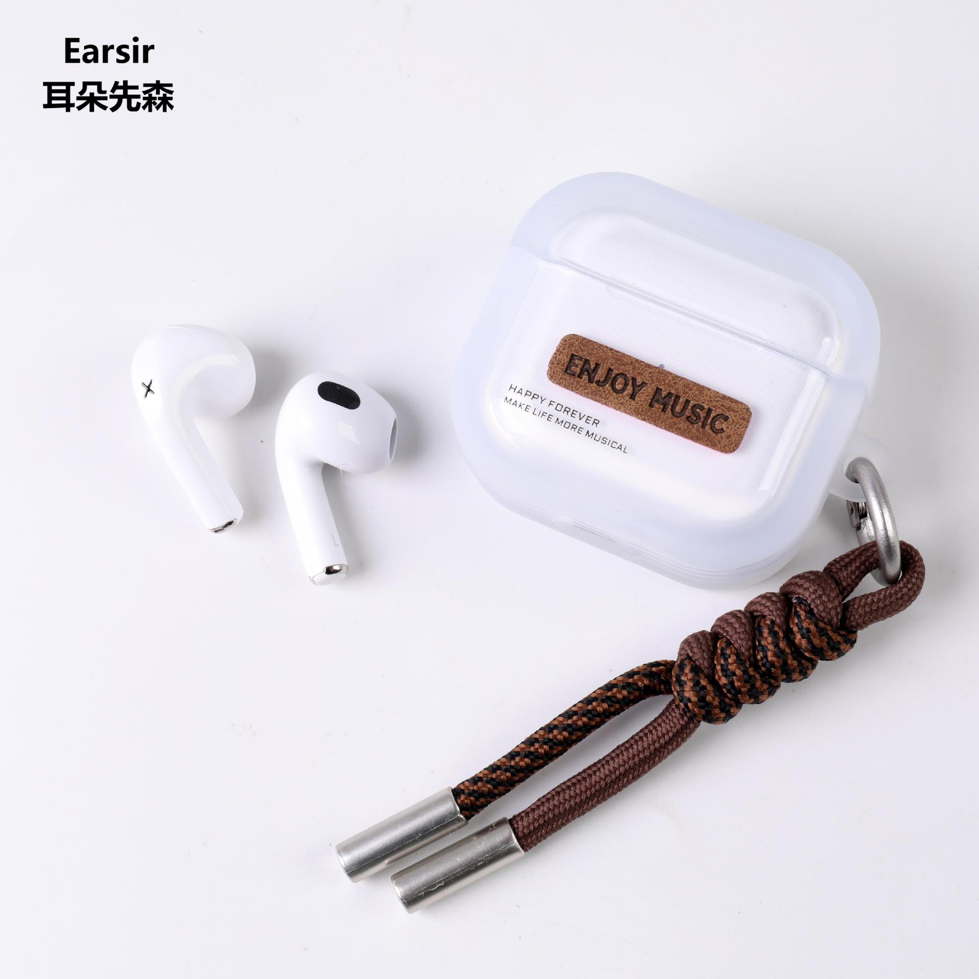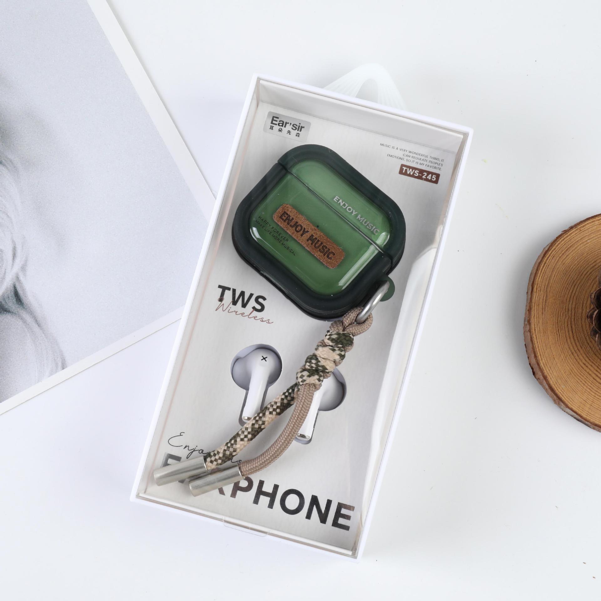 耳朵先森TWS-245简约风英文TWS真无线蓝牙耳机,美式风格创意皮革贴片设计,格纹编制挂绳彰显时尚品味,5.4+EDR版本 高清音质 支持双耳通话 无线束缚 小巧精致 携带方便 耳机根据人体工程学设计 佩戴舒适 贴合耳道时 不易掉落,半入耳式耳机,16小时续命电量 ,可连续听音乐达到4小时以上(比市场一般蓝牙耳机多百分之五十的使用时间)