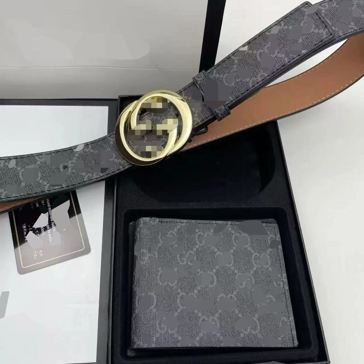 • 검정 천 패턴 더블 G 브론즈 버클 세트