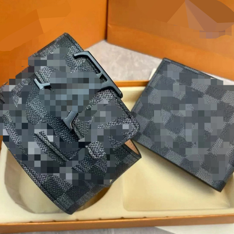 • 블랙 체크 골드 버클 세트