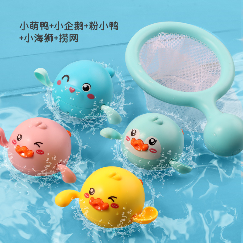 • 수영하는 귀여운 오리 + 꼬마 펭귄 + 핑크 오리 + 꼬마 바다사자 [4개 팩] + 낚시 그물