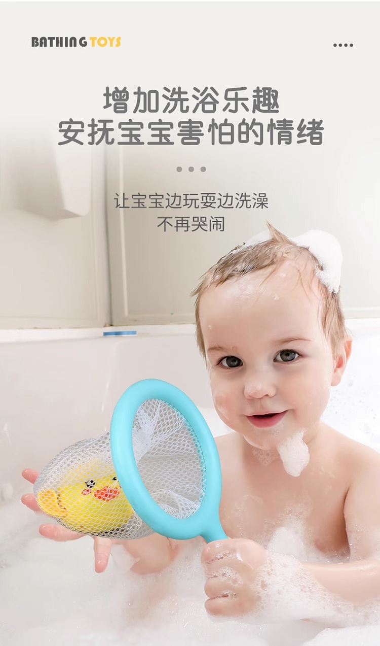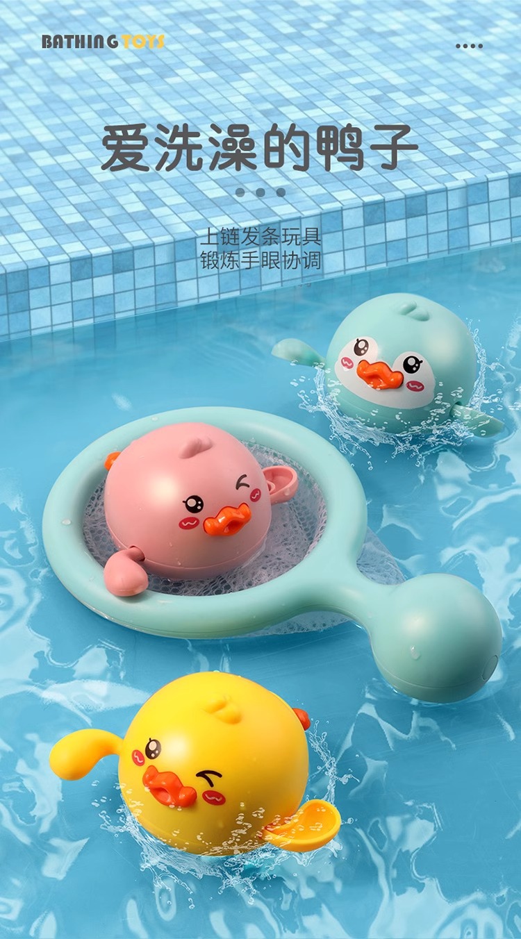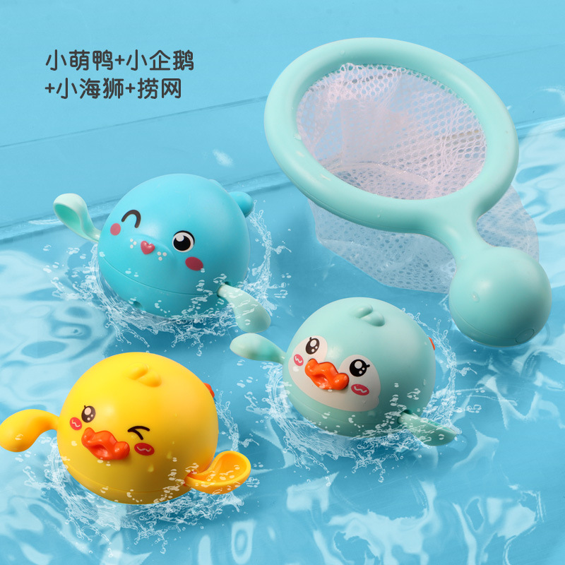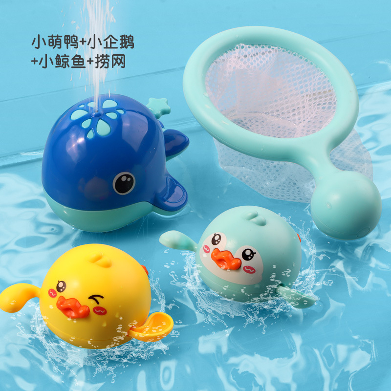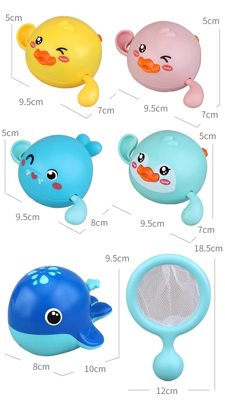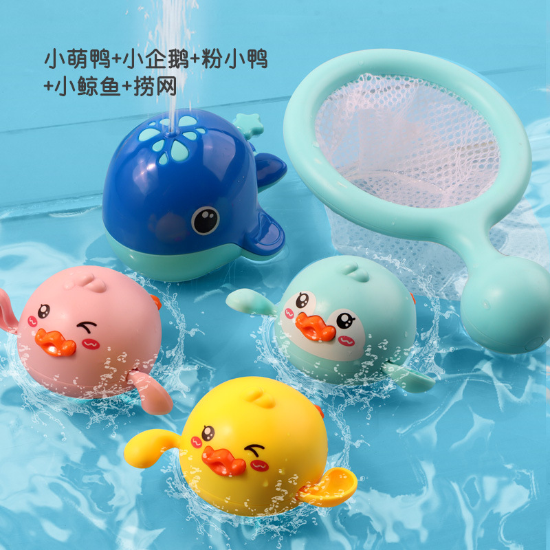 • 수영하는 귀여운 오리 + 꼬마 펭귄 + 핑크 오리 + 물총고래 [4팩] + 낚시 그물