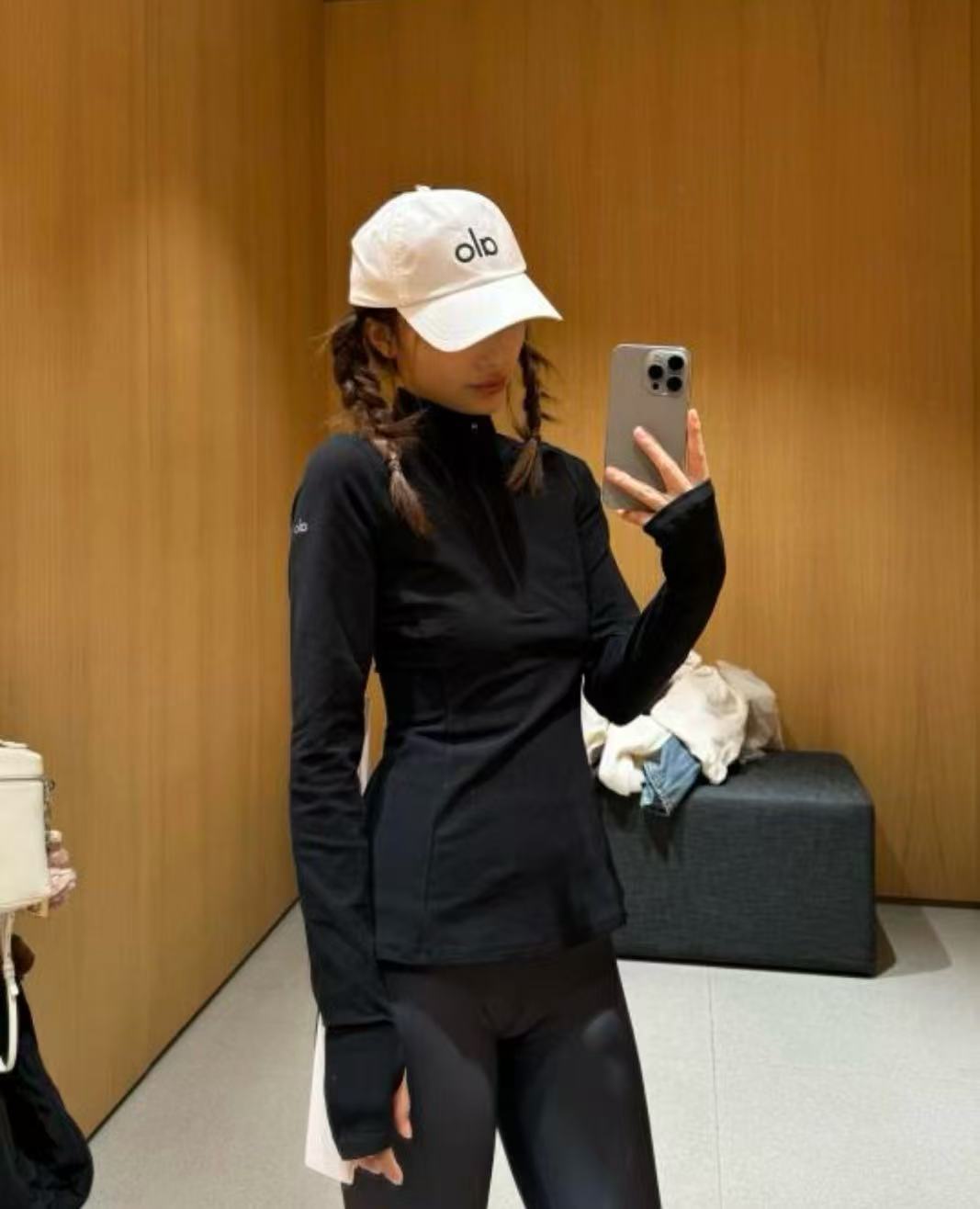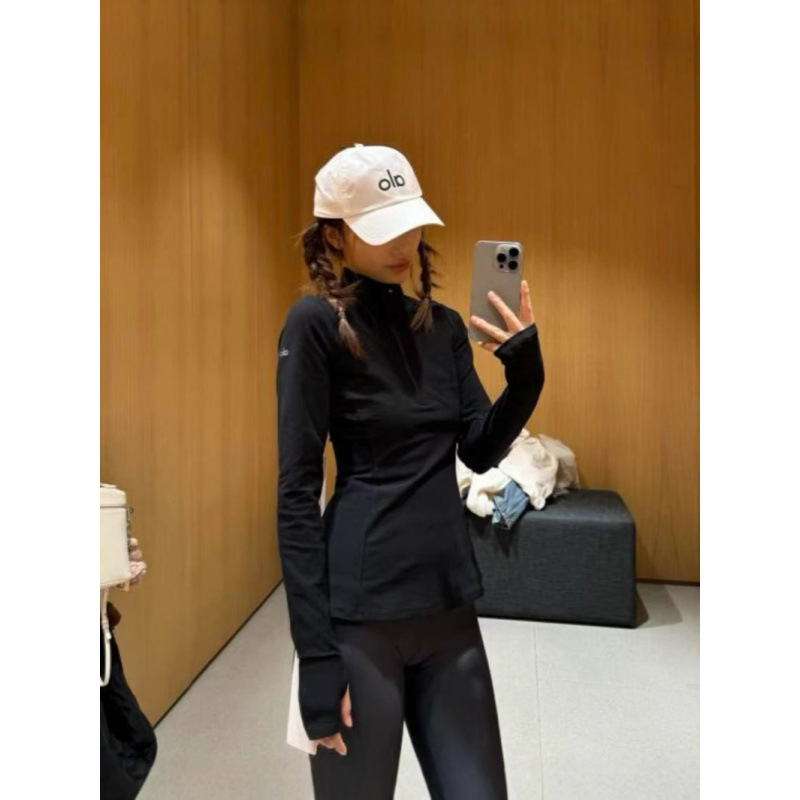 Alo 요가 완장 레터링 요가 피트니스 자켓 슬림 긴팔 탑 코트 하프 지퍼 스탠드 칼라 솔리드 컬러 여성스토어 가기