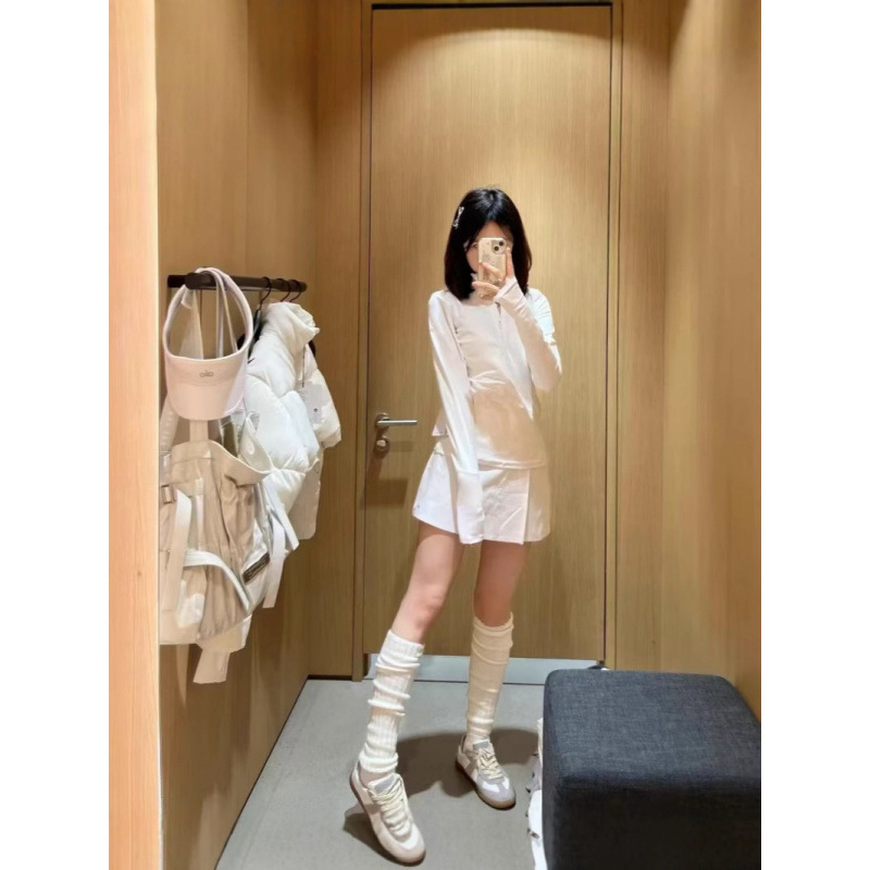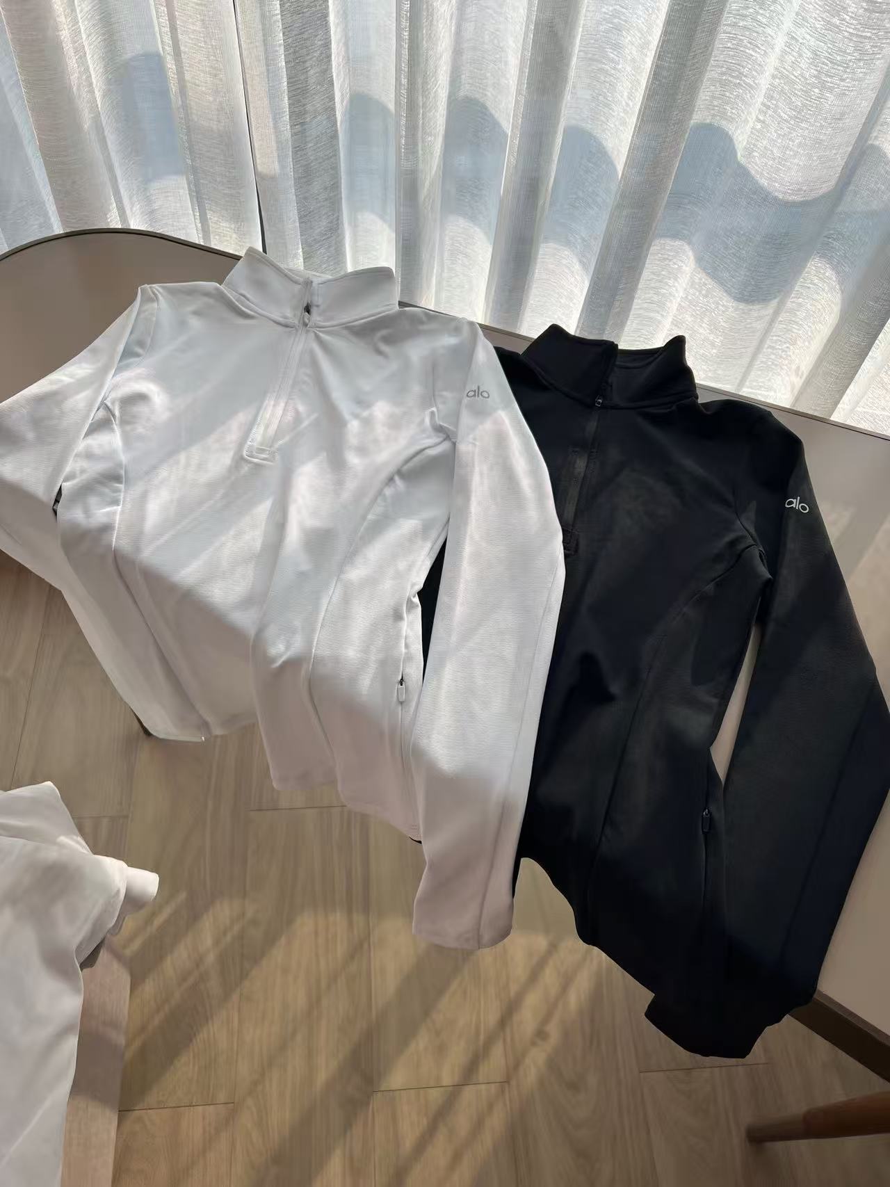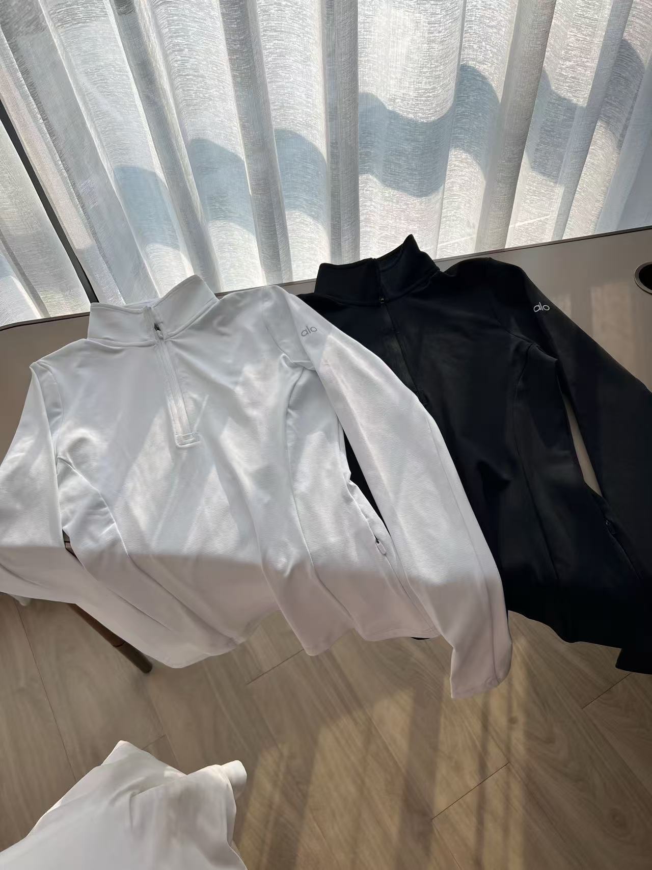 Alo 요가 완장 레터링 요가 피트니스 자켓 슬림 긴팔 탑 코트 하프 지퍼 스탠드 칼라 솔리드 컬러 여성